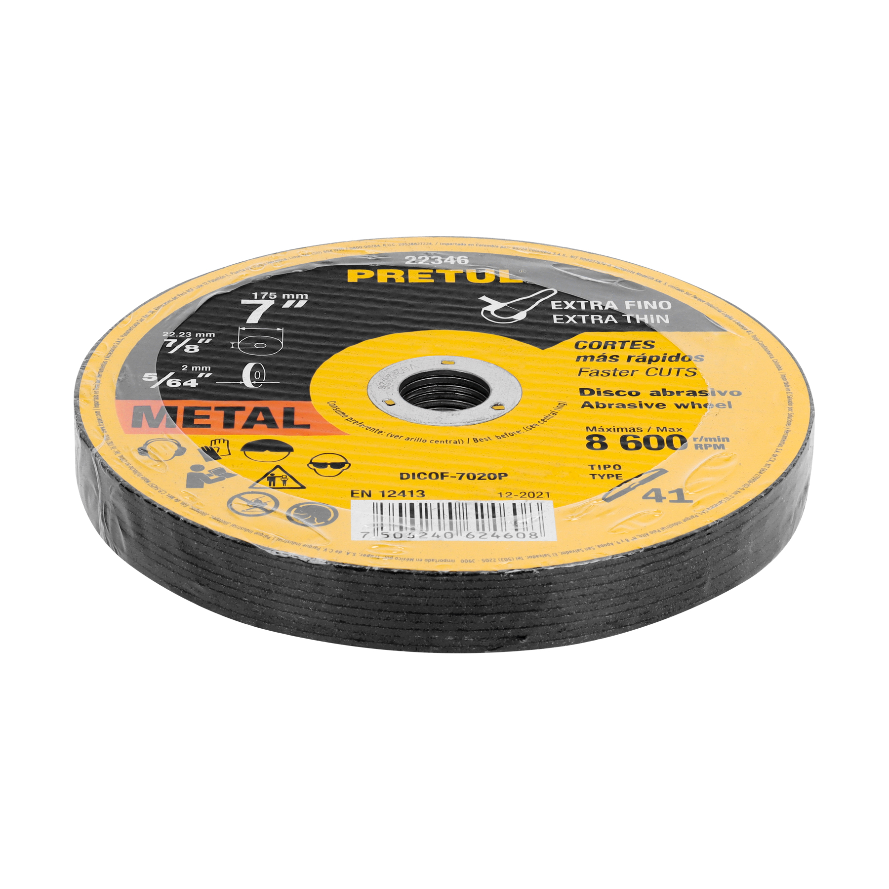 Disco abrasivo de corte preciso metal 7" x 2 mm, PRETUL