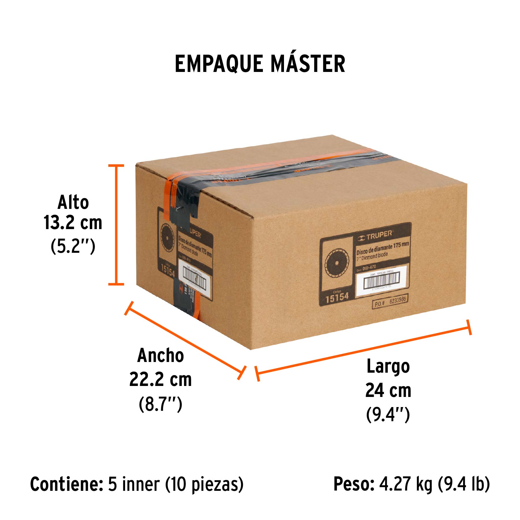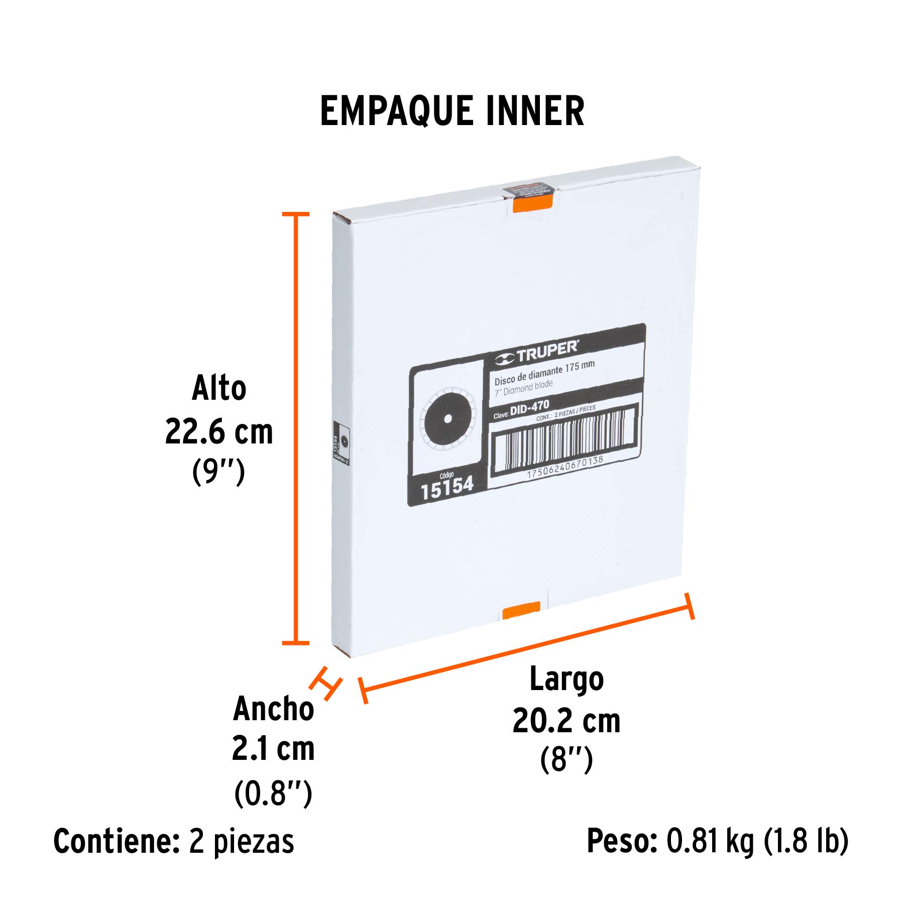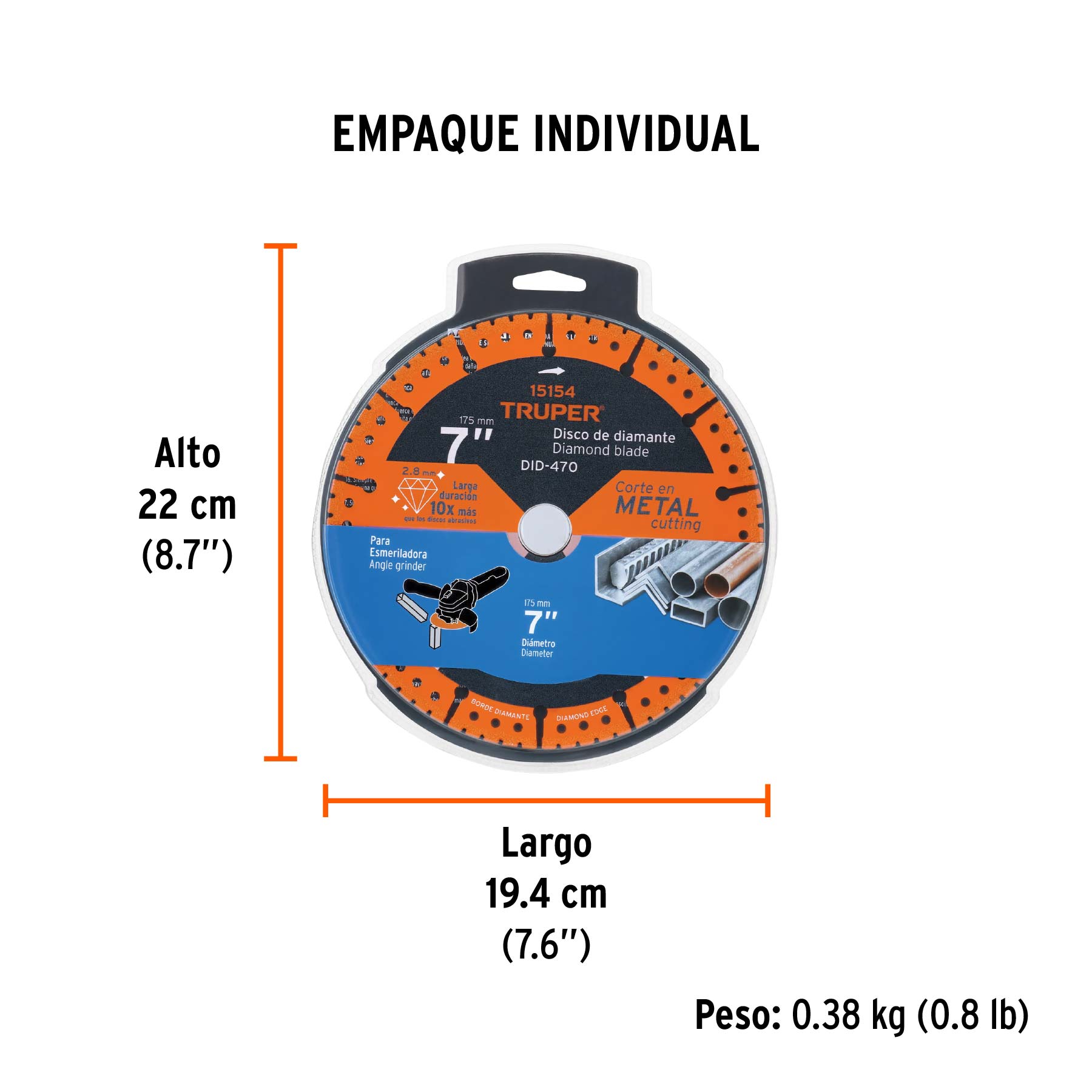 Disco de diamante de 7" x 2.8 mm, corte de metal, TRUPER