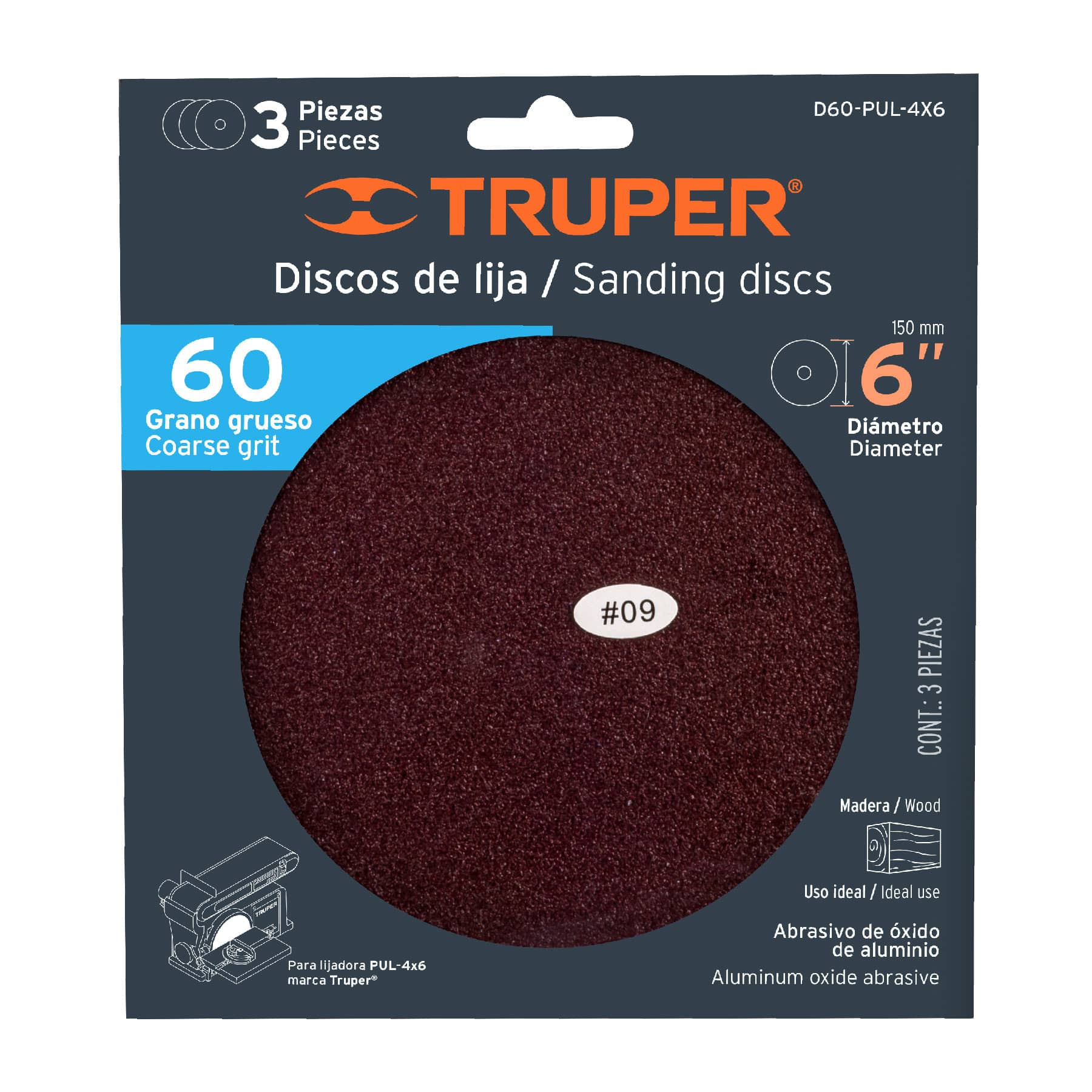 Paquete con 3 discos de lija 6" grano 60, para PUL-4X6T