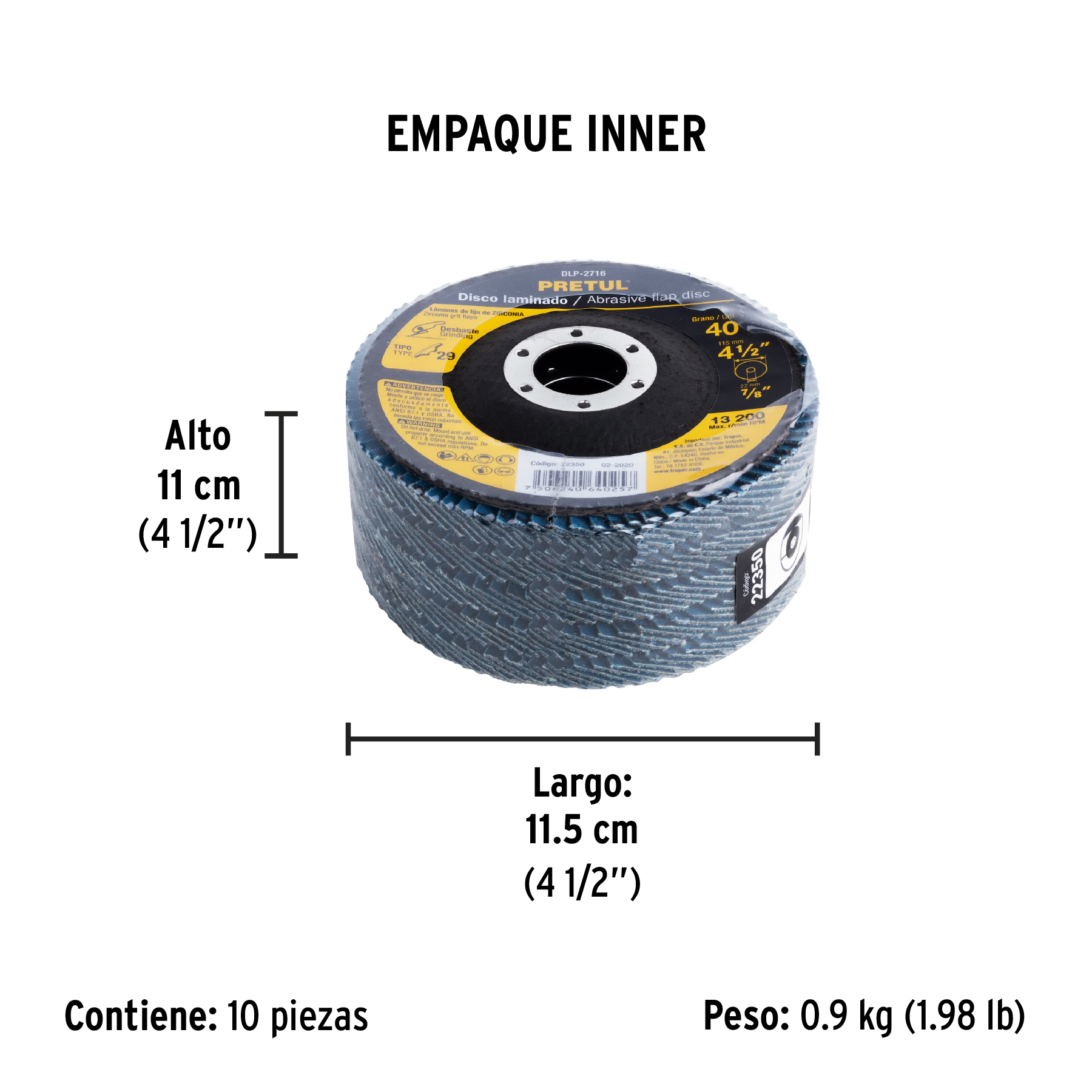 Diámetro exterior | 4 1/2" (115 mm) |