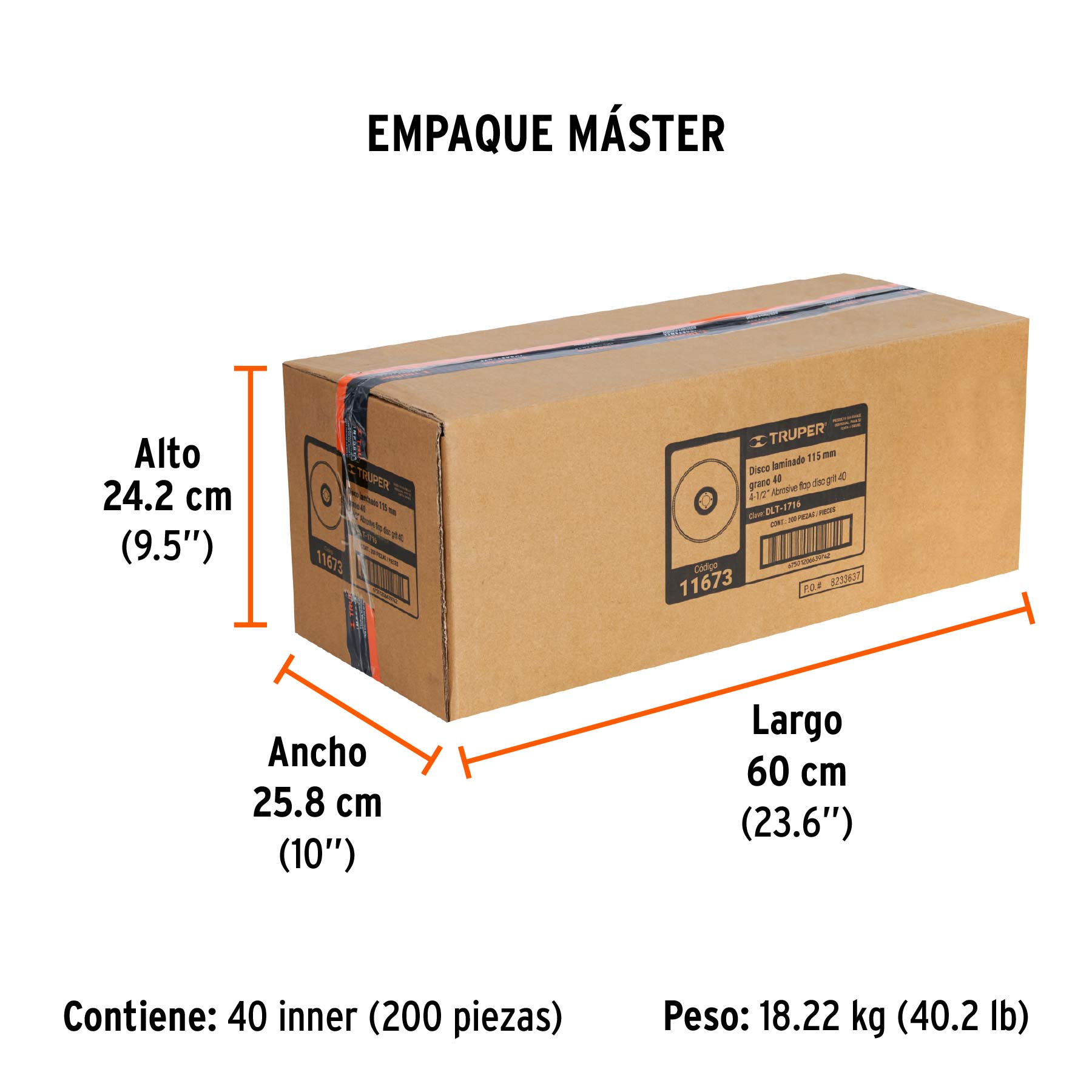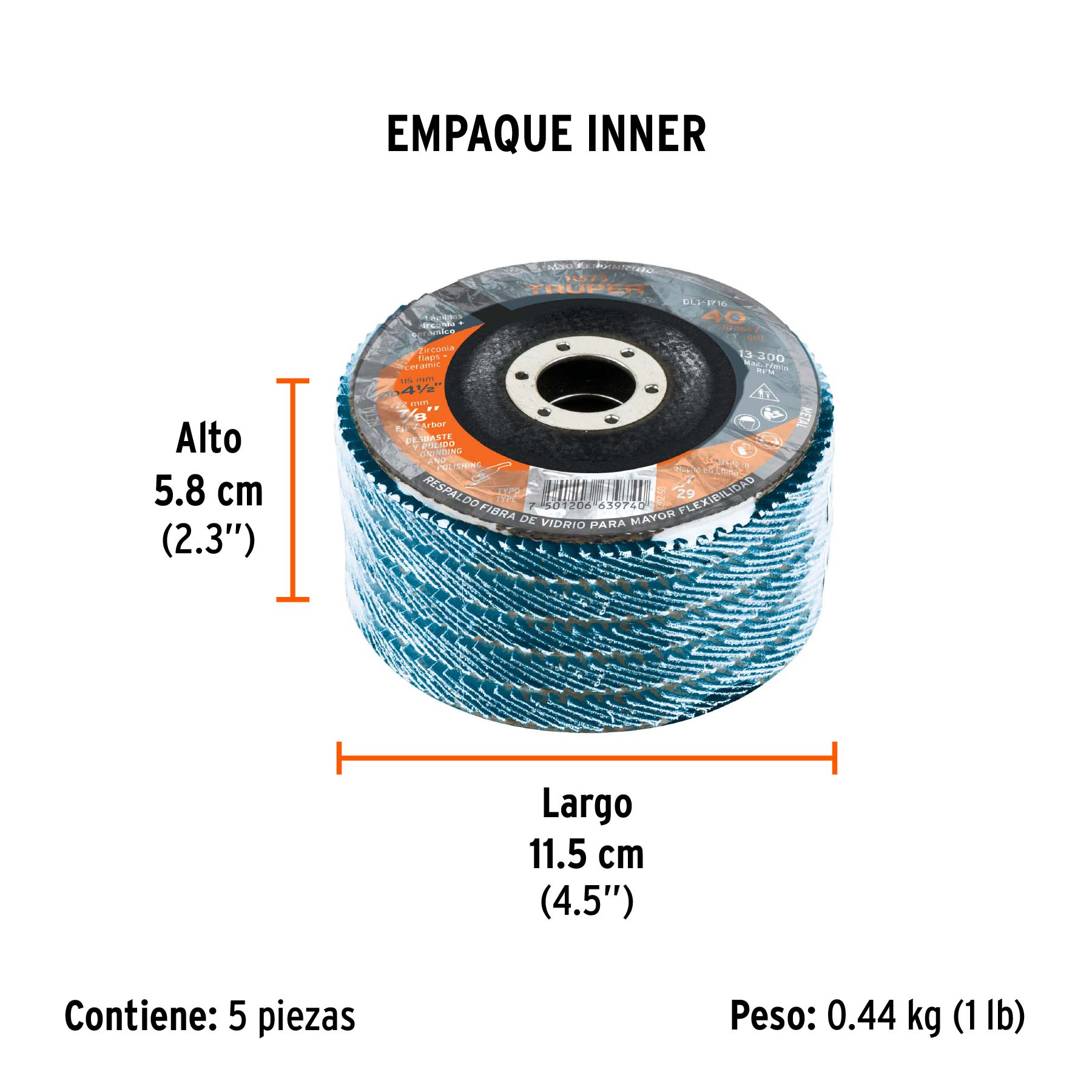 Disco laminado 4-1/2", grano 40 centro 7/8", fibra, TRUPER