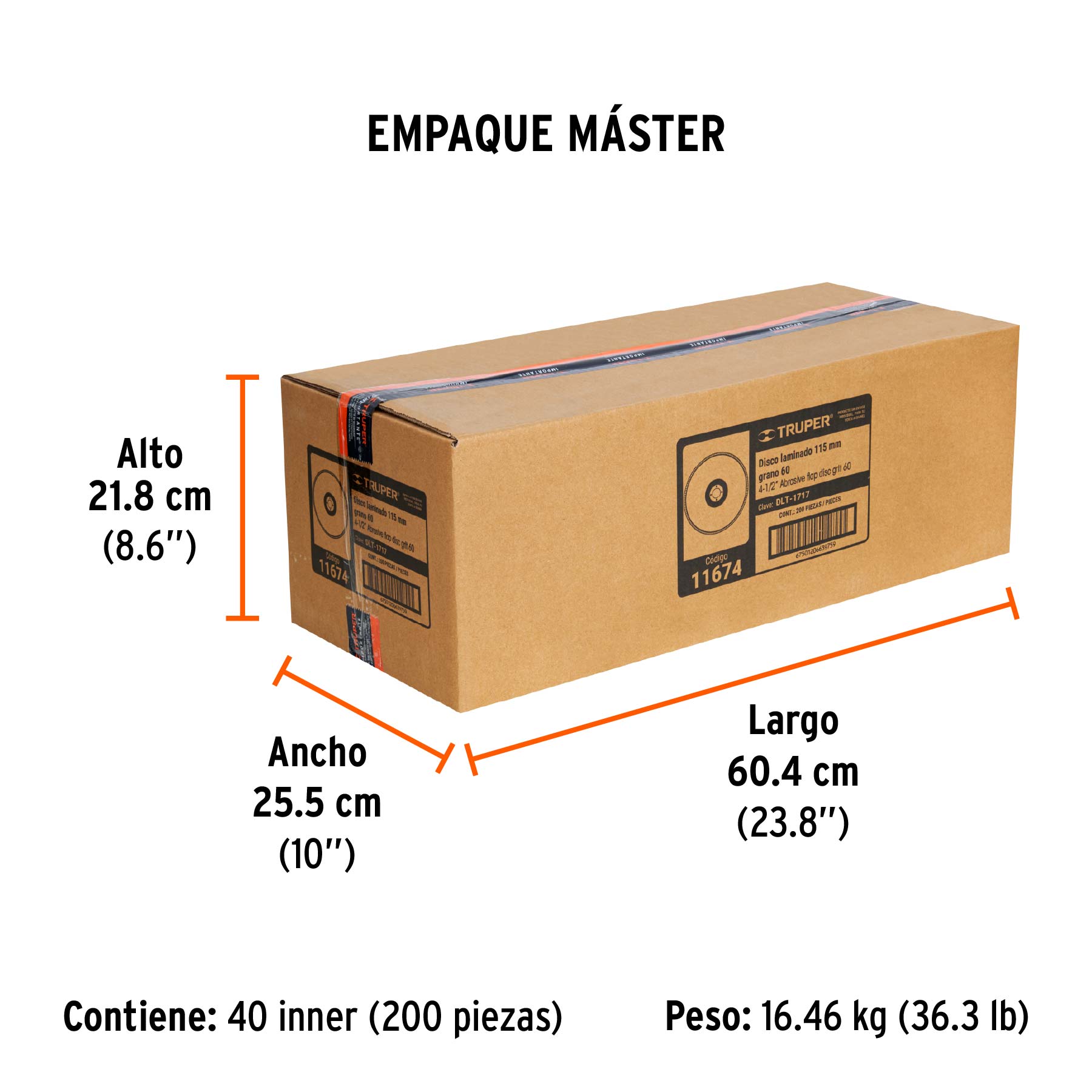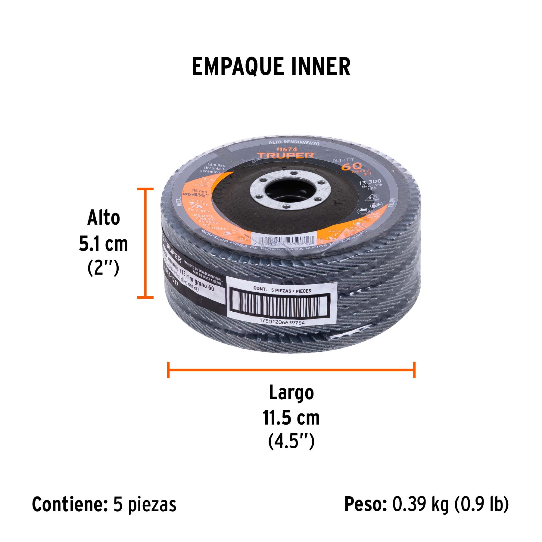 Disco laminado 4-1/2", grano 60 centro 7/8", fibra, TRUPER