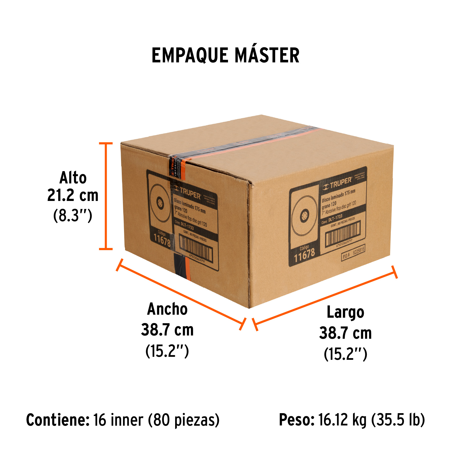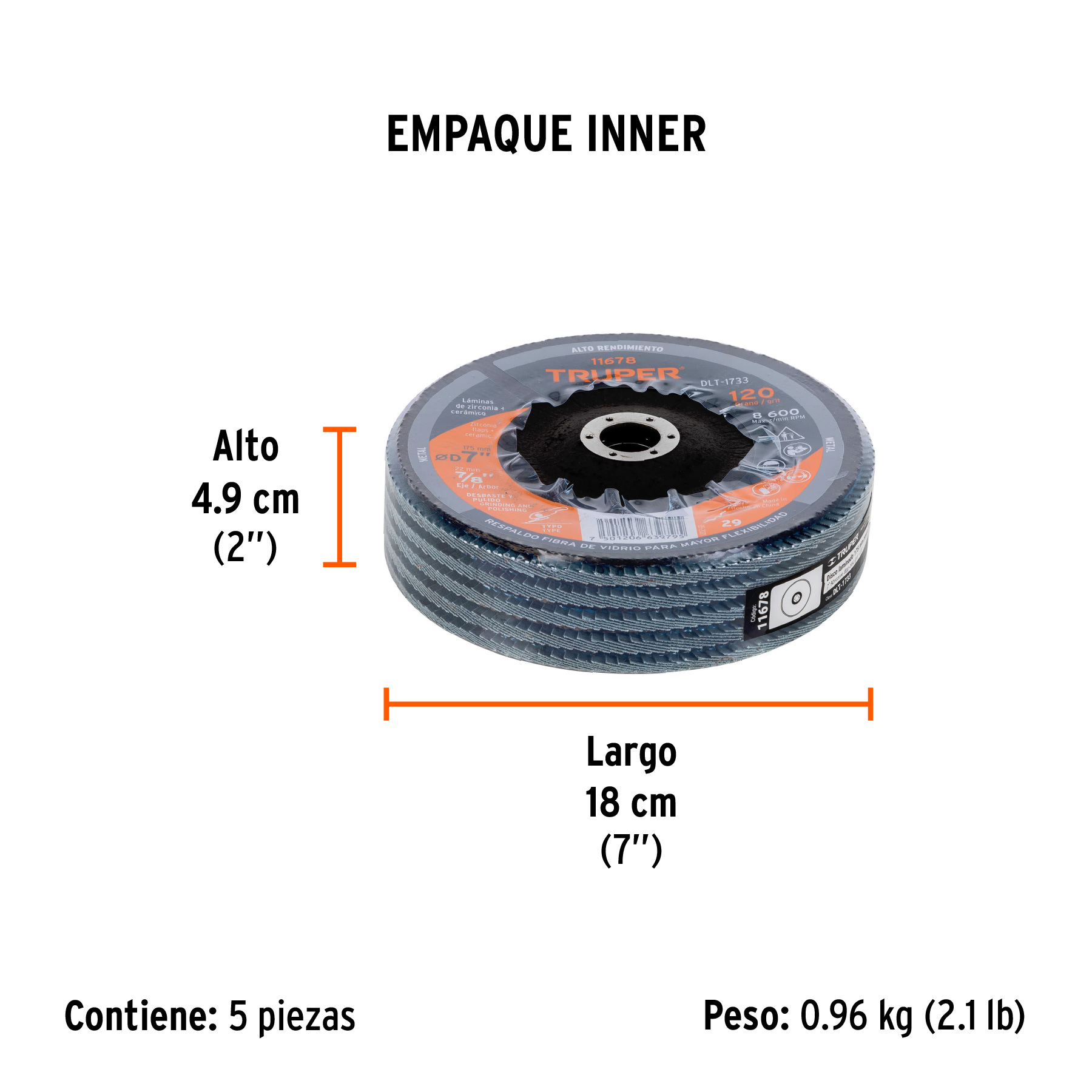 Disco laminado 7", grano 120 centro 7/8", fibra, TRUPER