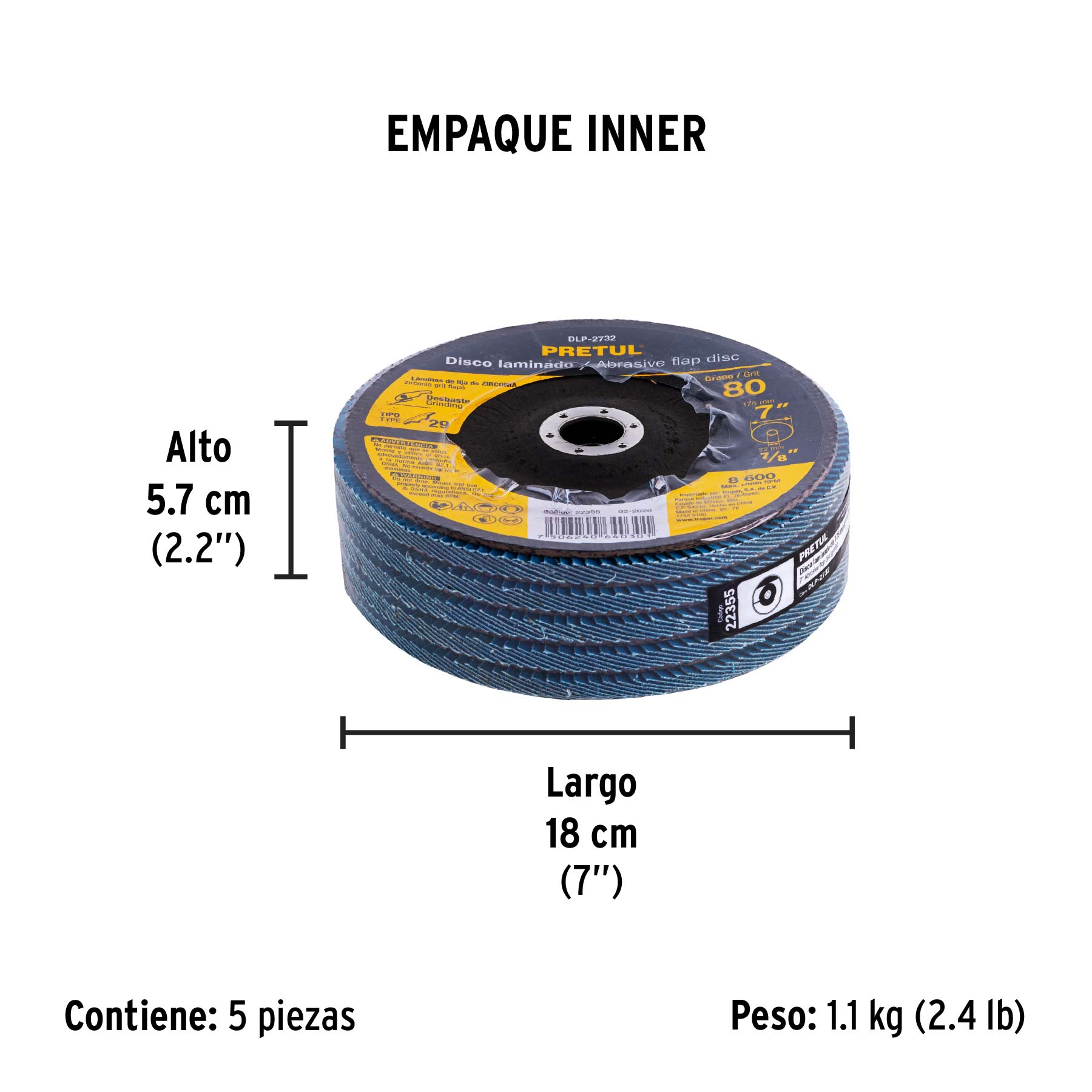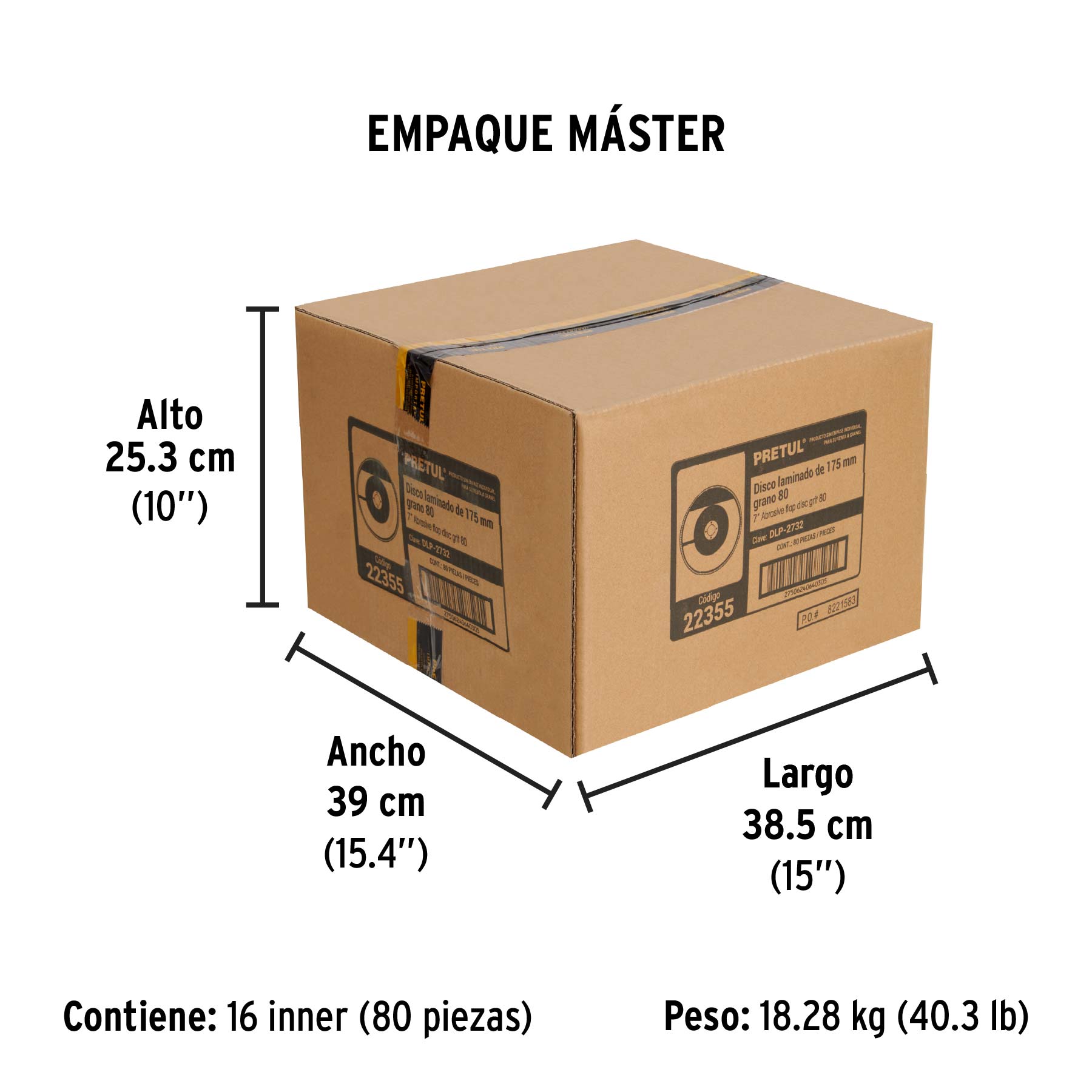 Disco laminado 7", grano 80 centro 7/8", fibra, PRETUL