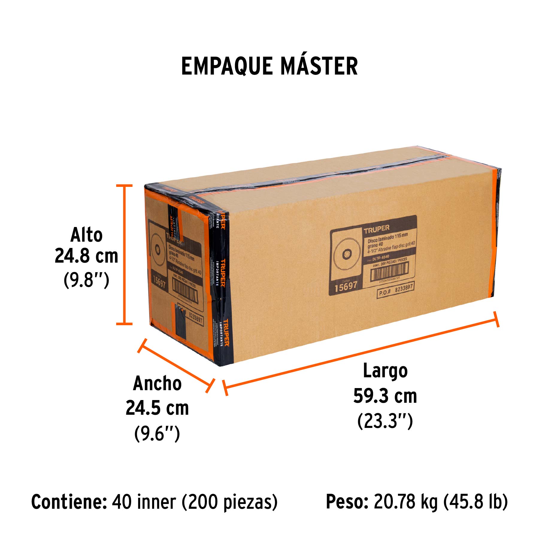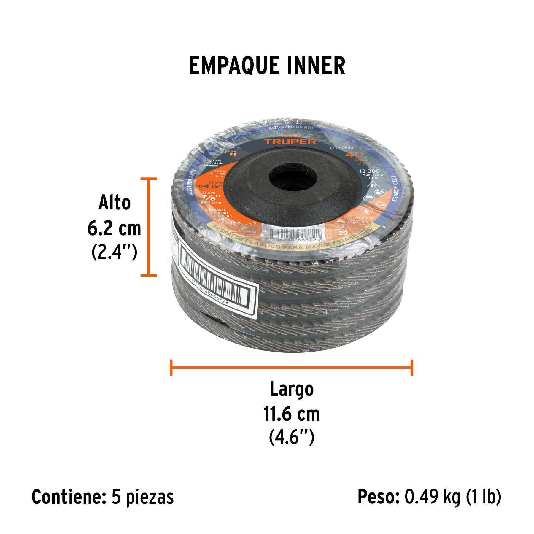 Disco laminado 4-1/2" grano 40 centro 7/8", plástico, TRUPER