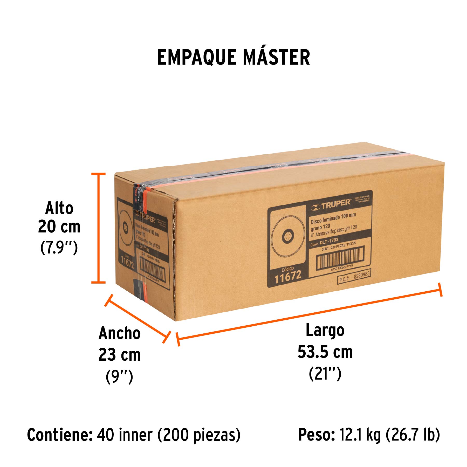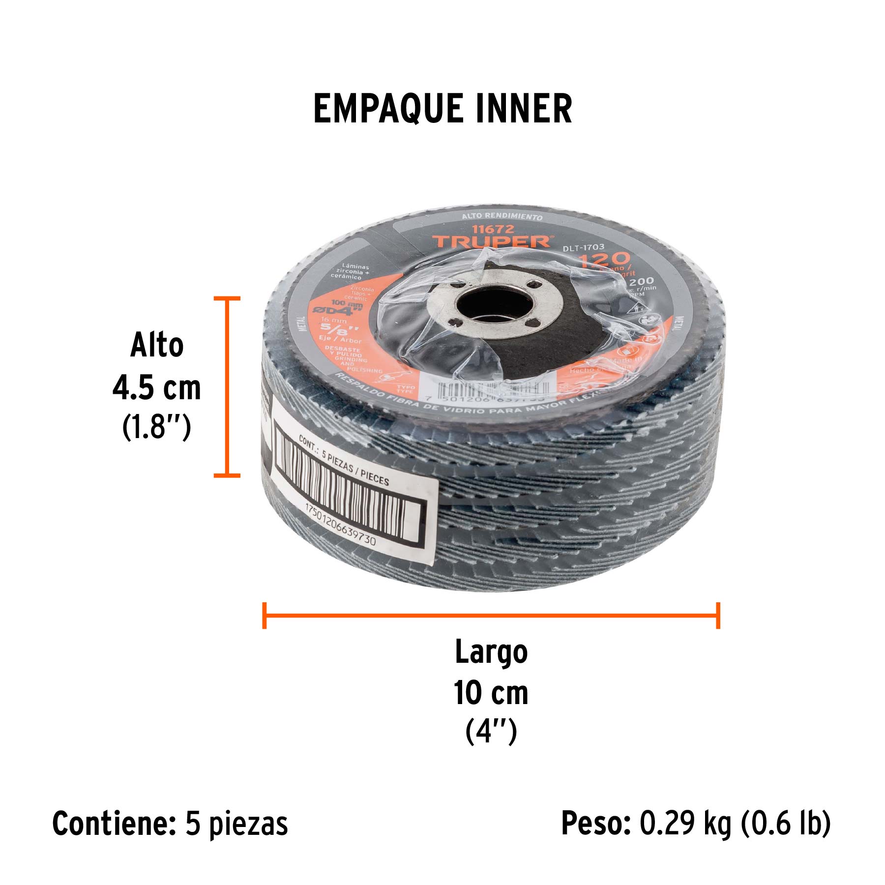 Disco laminado 4", grano 120 centro 5/8", fibra, TRUPER