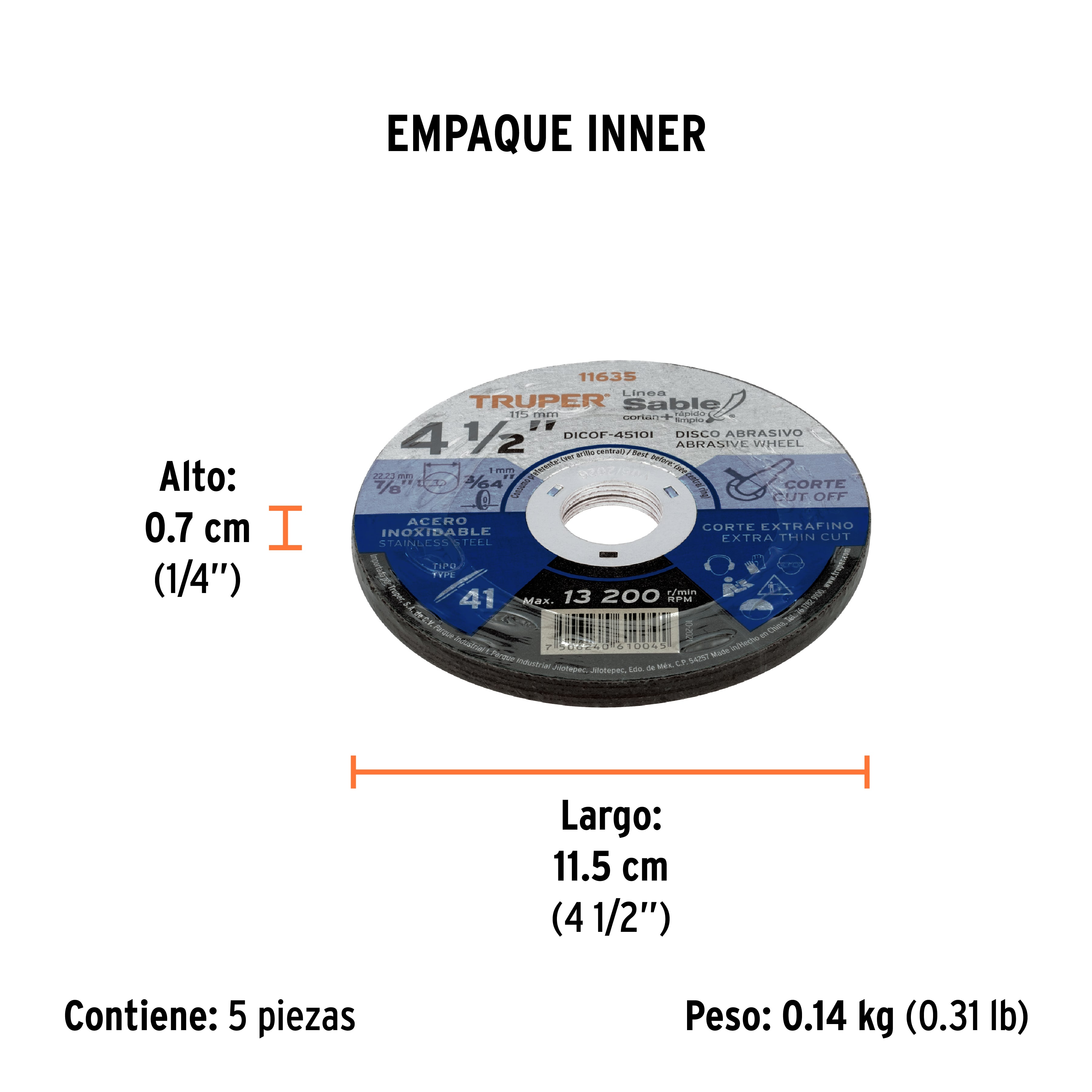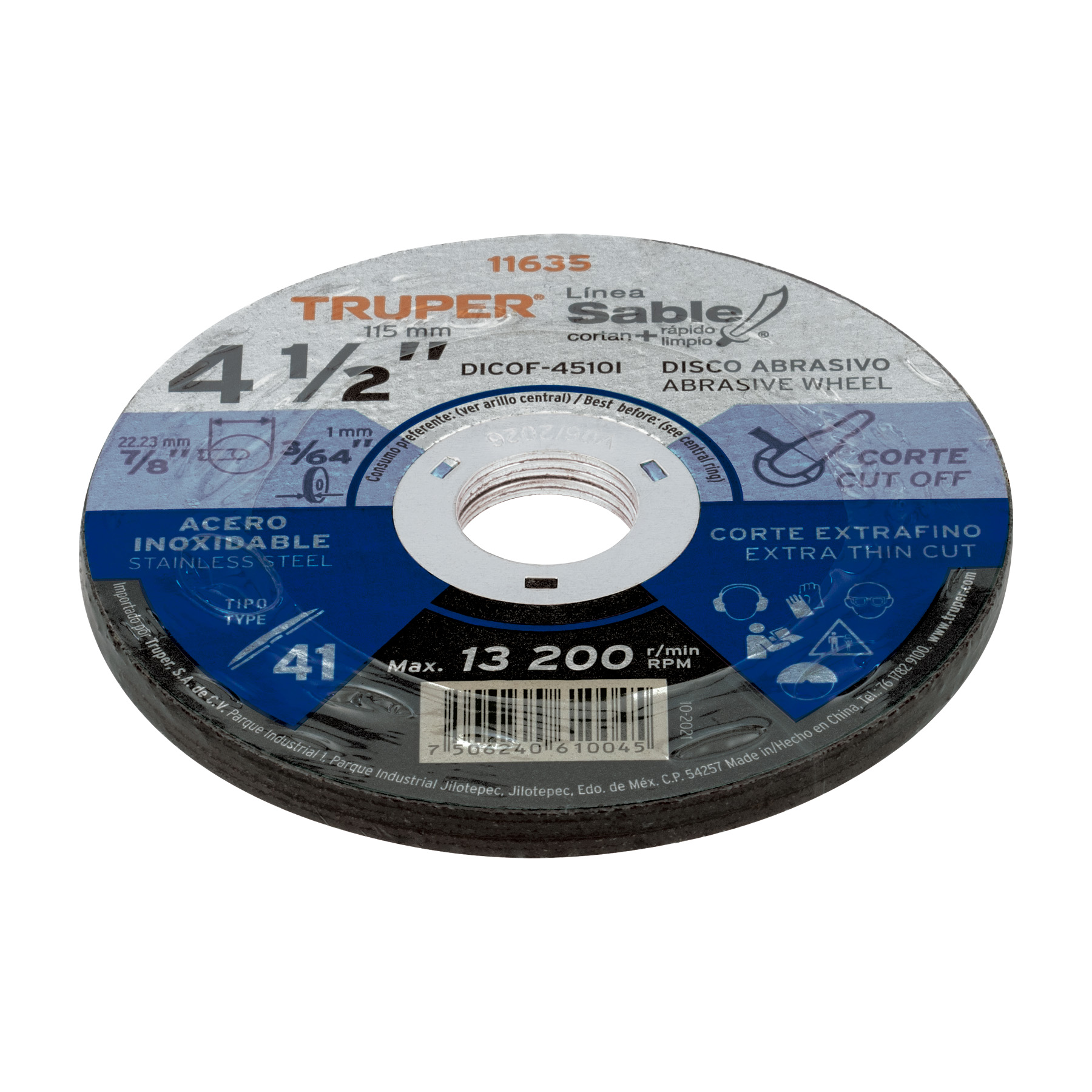 Disco abrasivo de corte preciso acero inox 4-1/2"x1mm TRUPER