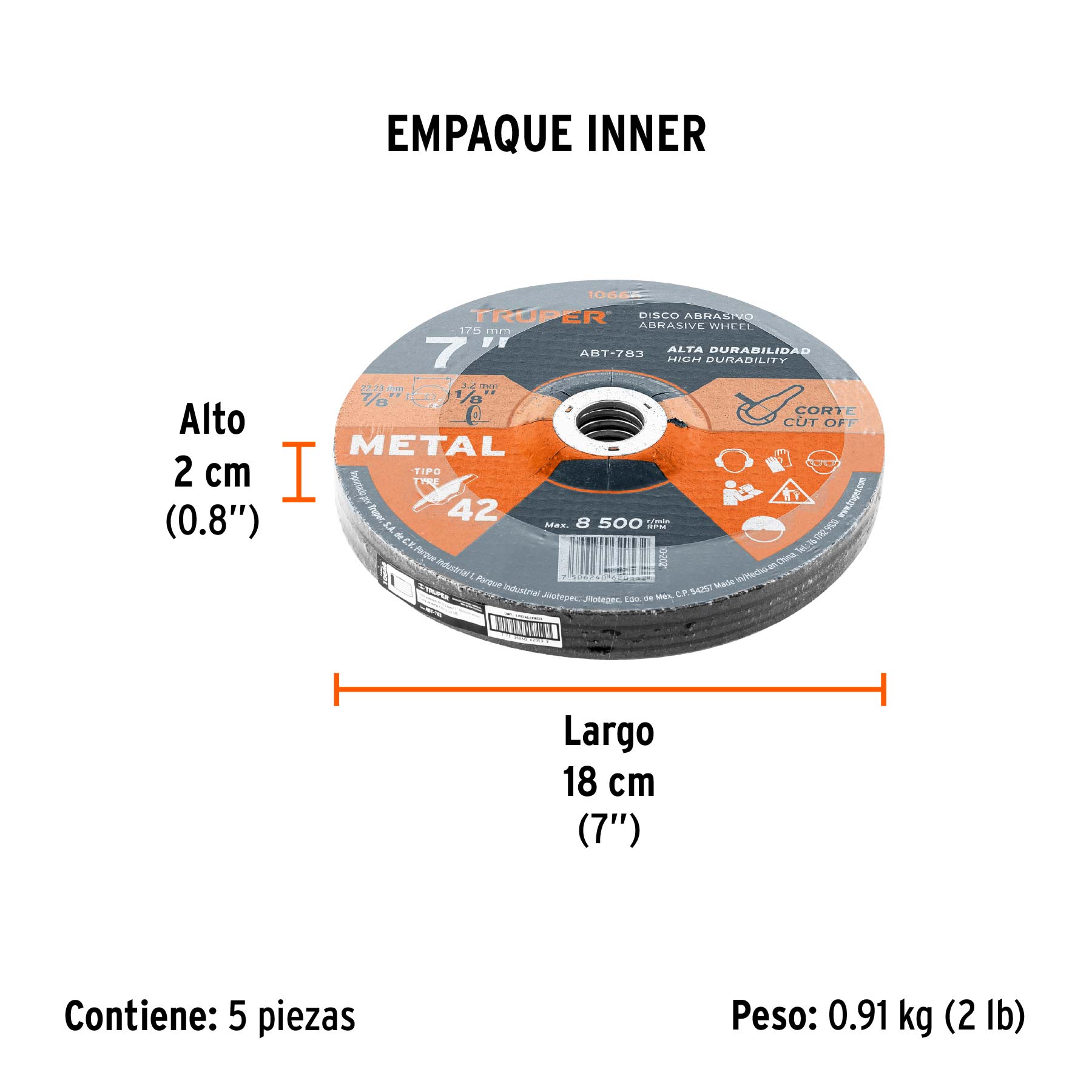Disco Tipo 42 de 7" x 3.2 mm para corte de metal, TRUPER