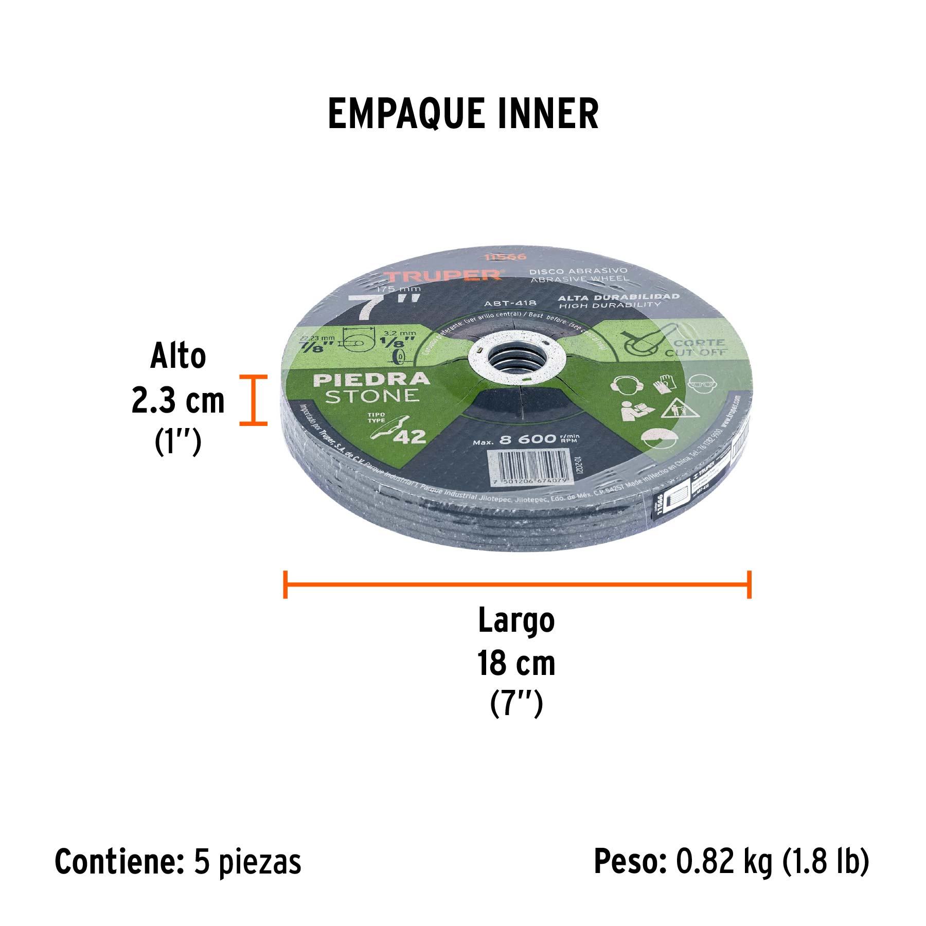 Disco Tipo 42 de 7" x 3.2 mm para corte de piedra, TRUPER
