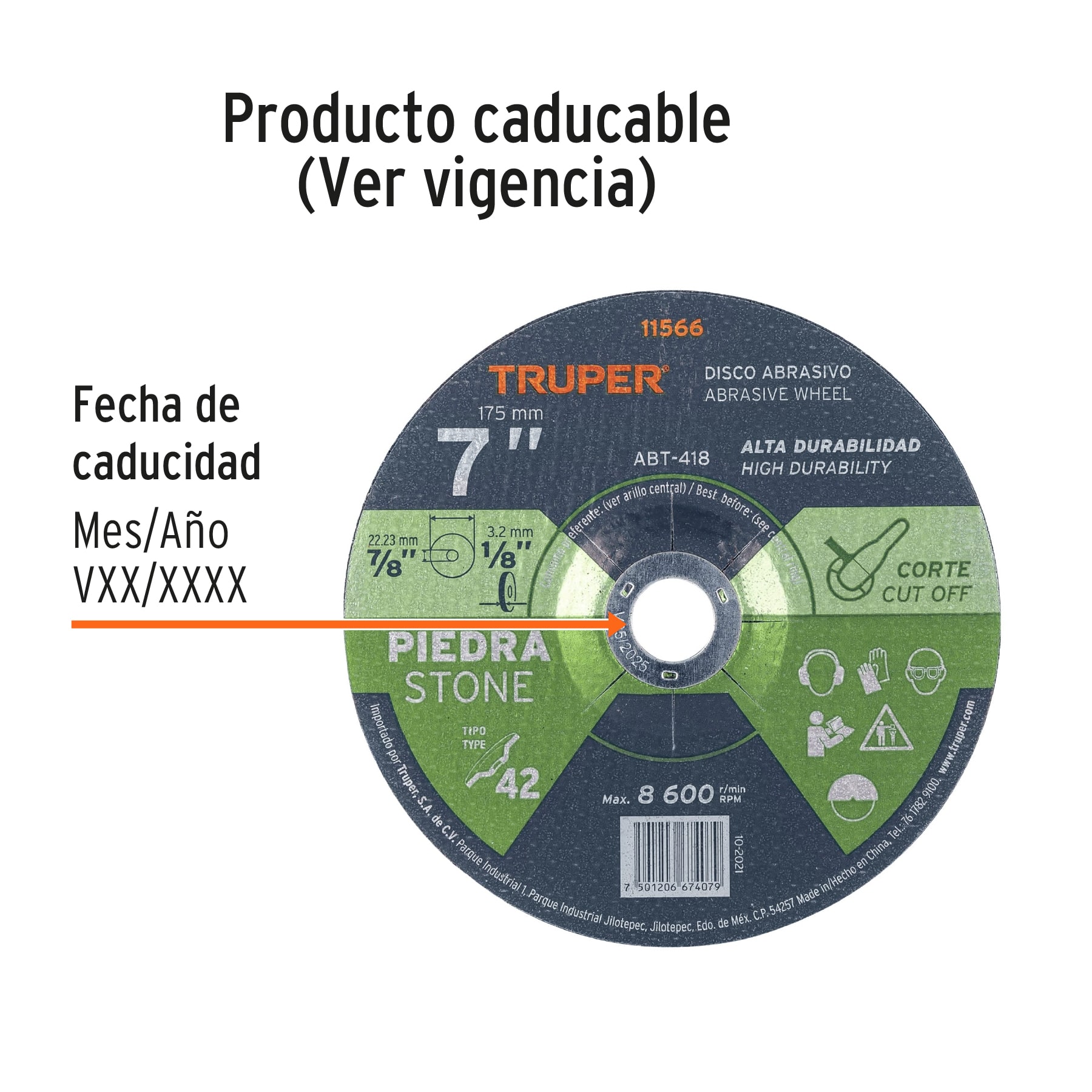 Garantizado contra defectos de fabricación o mano de obra. La garantía se puede hacer válida con cualquier distribuidor de TRUPER