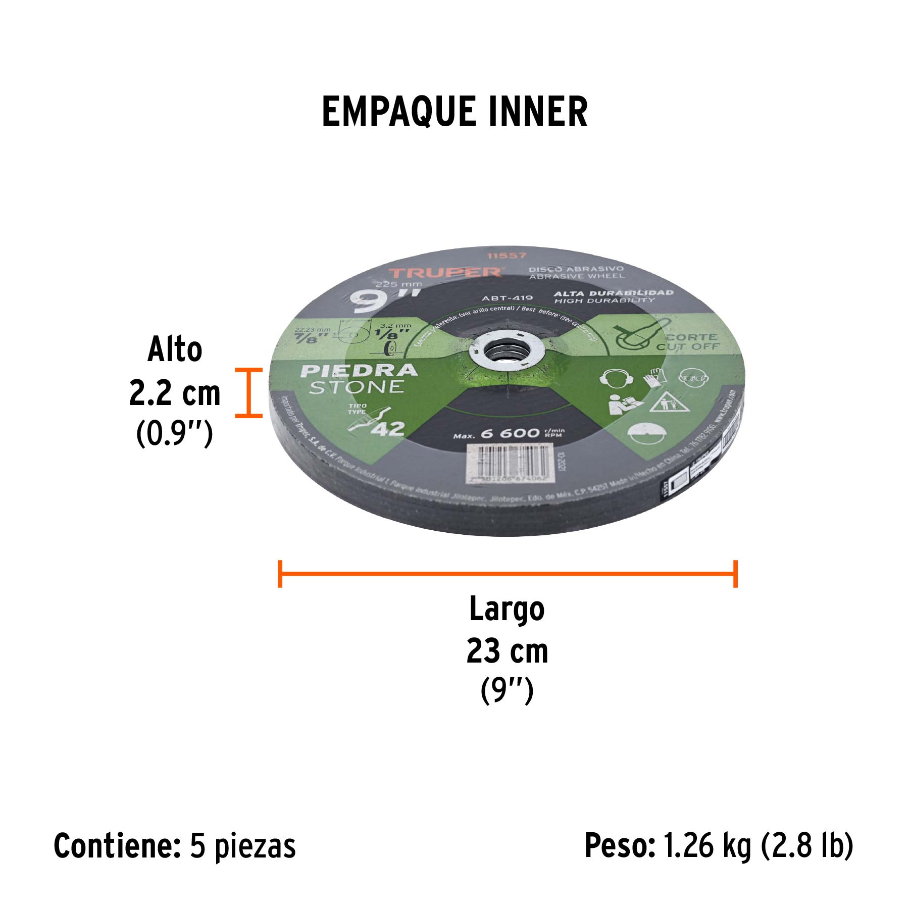 Disco Tipo 42 de 9" x 3.2 mm para corte de piedra, TRUPER