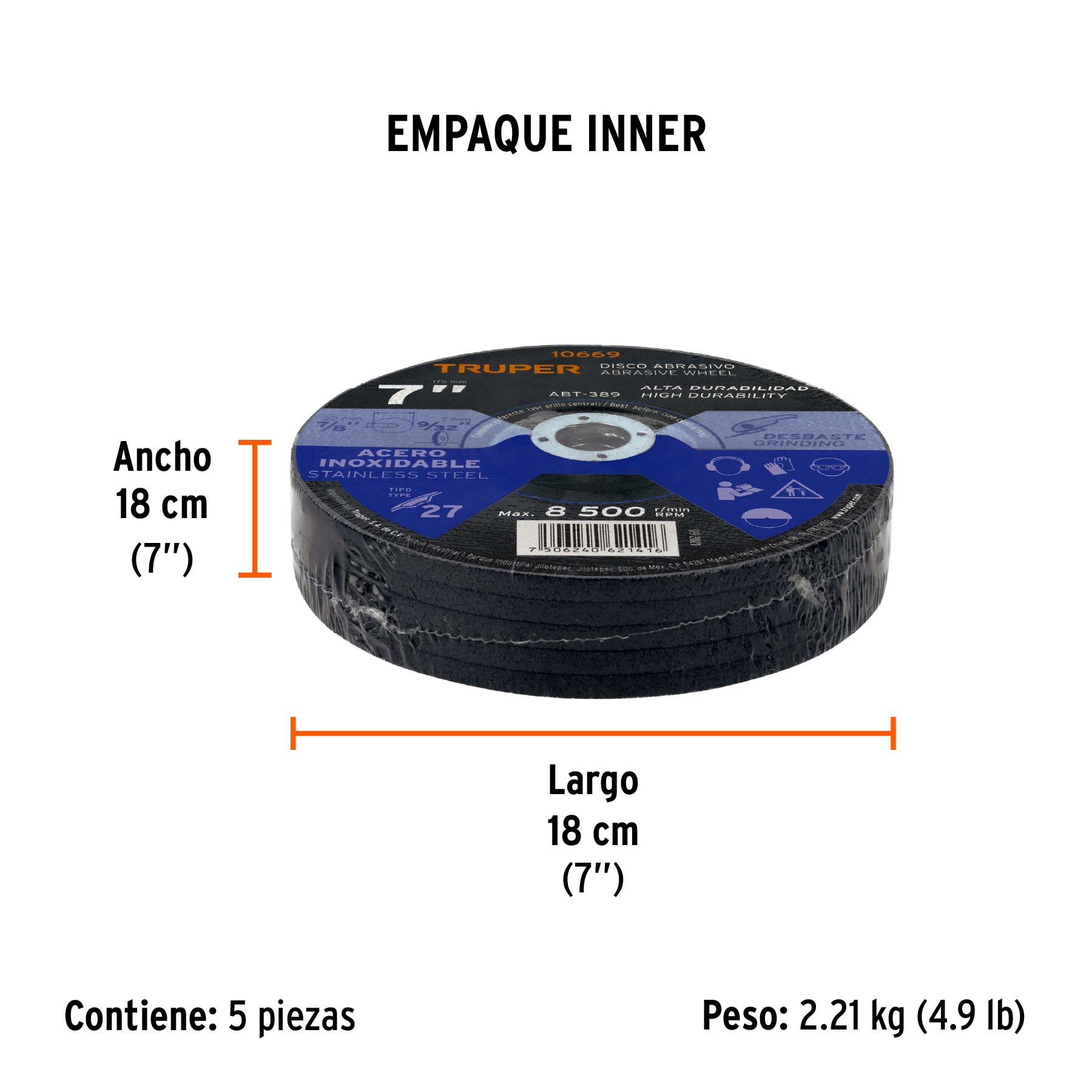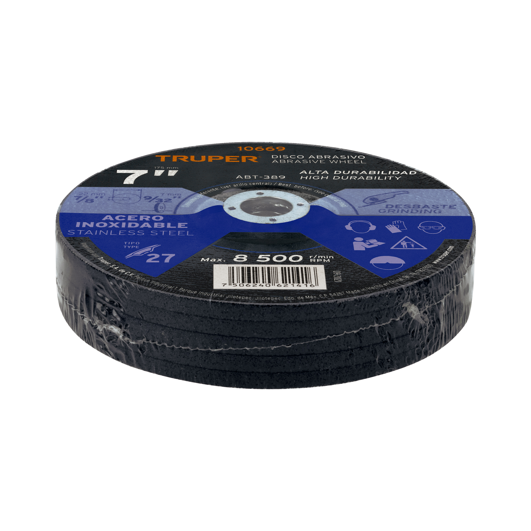 Disco Tipo 27 de 7" x 7.2 mm desbaste de acero inoxidable