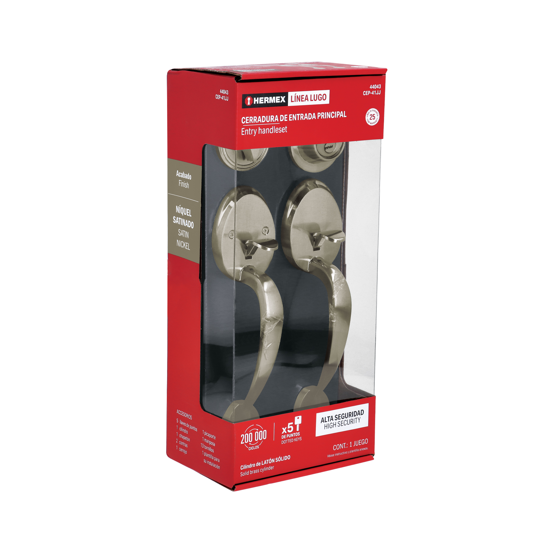 Doble jaladera, Lugo llave-mariposa, Níquel Satín, HERMEX
