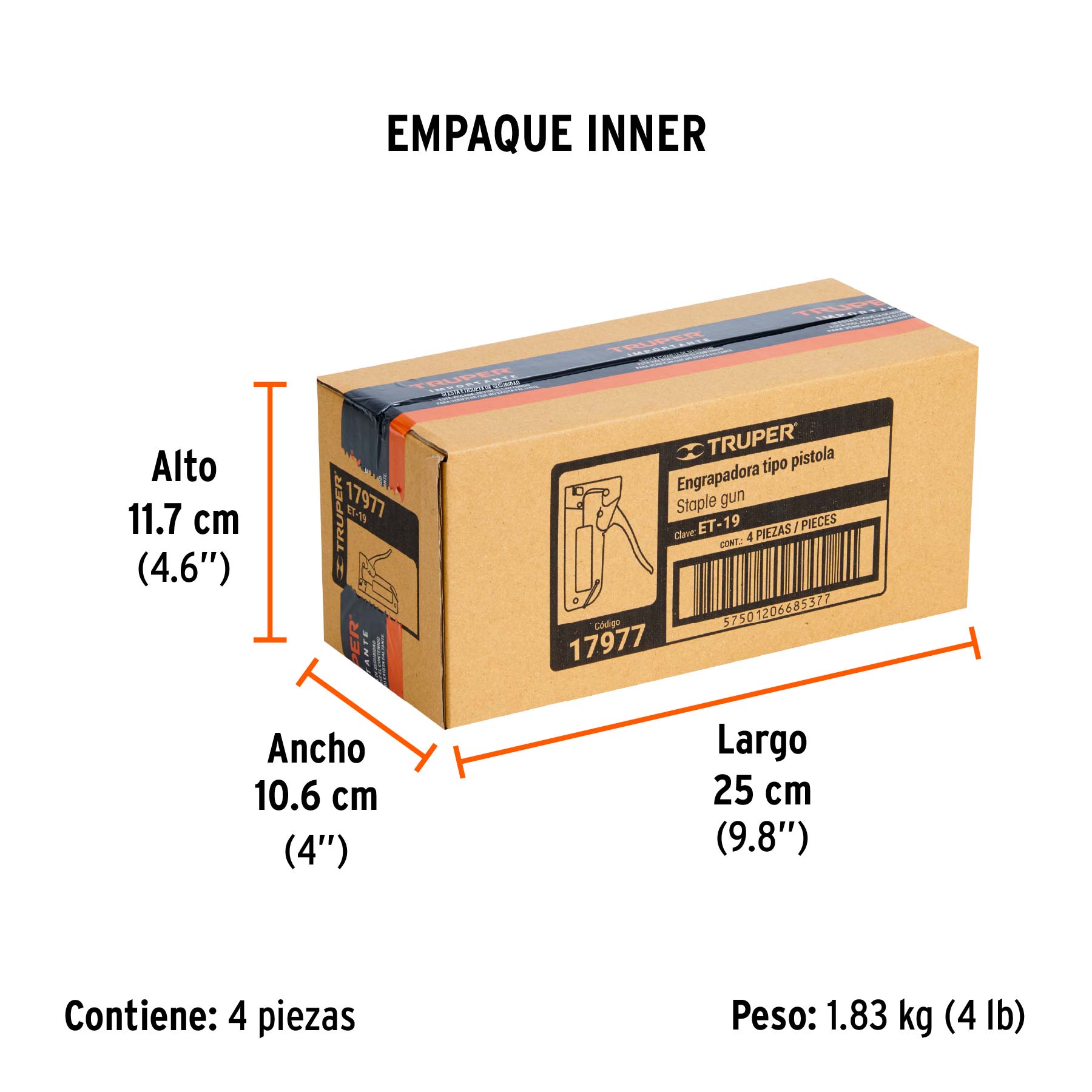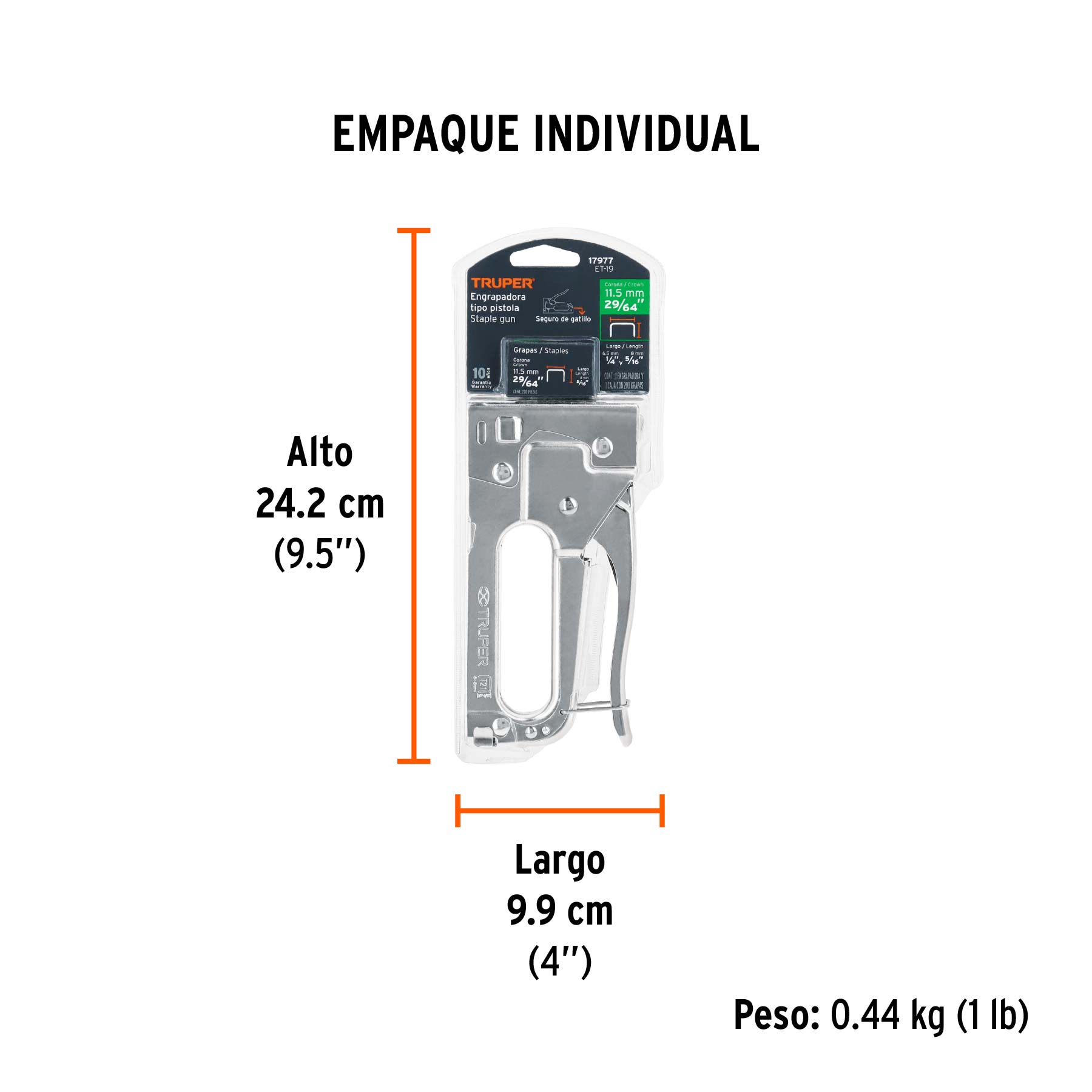 Engrapadora tipo pistola para ¼" y 5/16", con 200 grapas