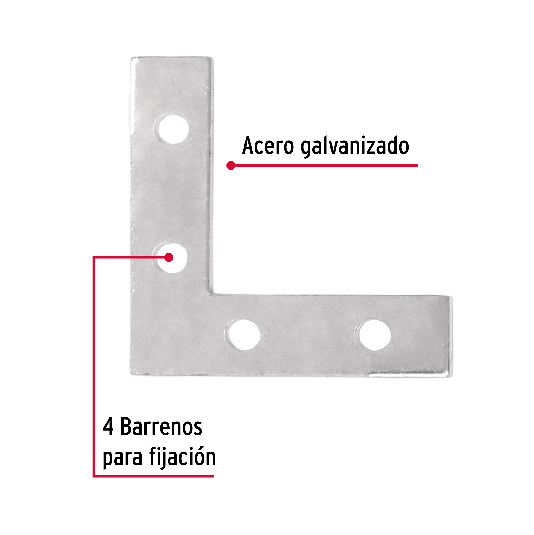 Bolsa c/24 escuadras planas cantoneras 2" x 2", FIERO