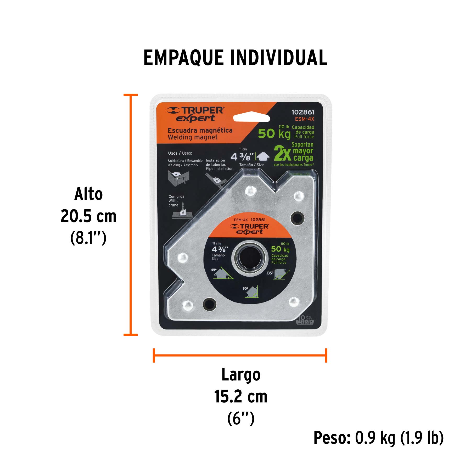 Escuadra magnética para soldar de 4-3/8" carga 50 kg, EXPERT