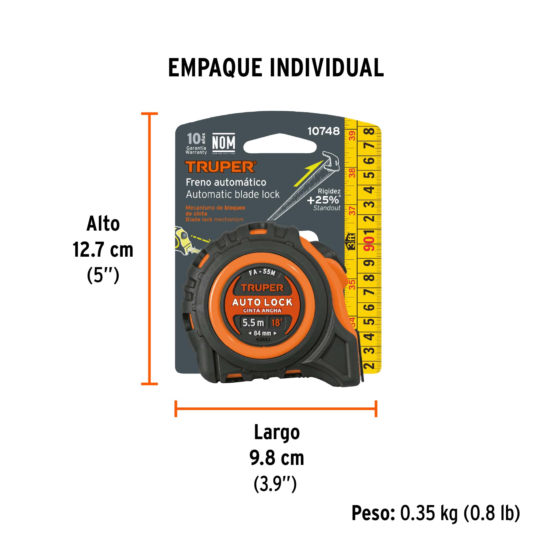 Flexómetro Auto-Lock contra impactos 5.5 m cinta 25 mm