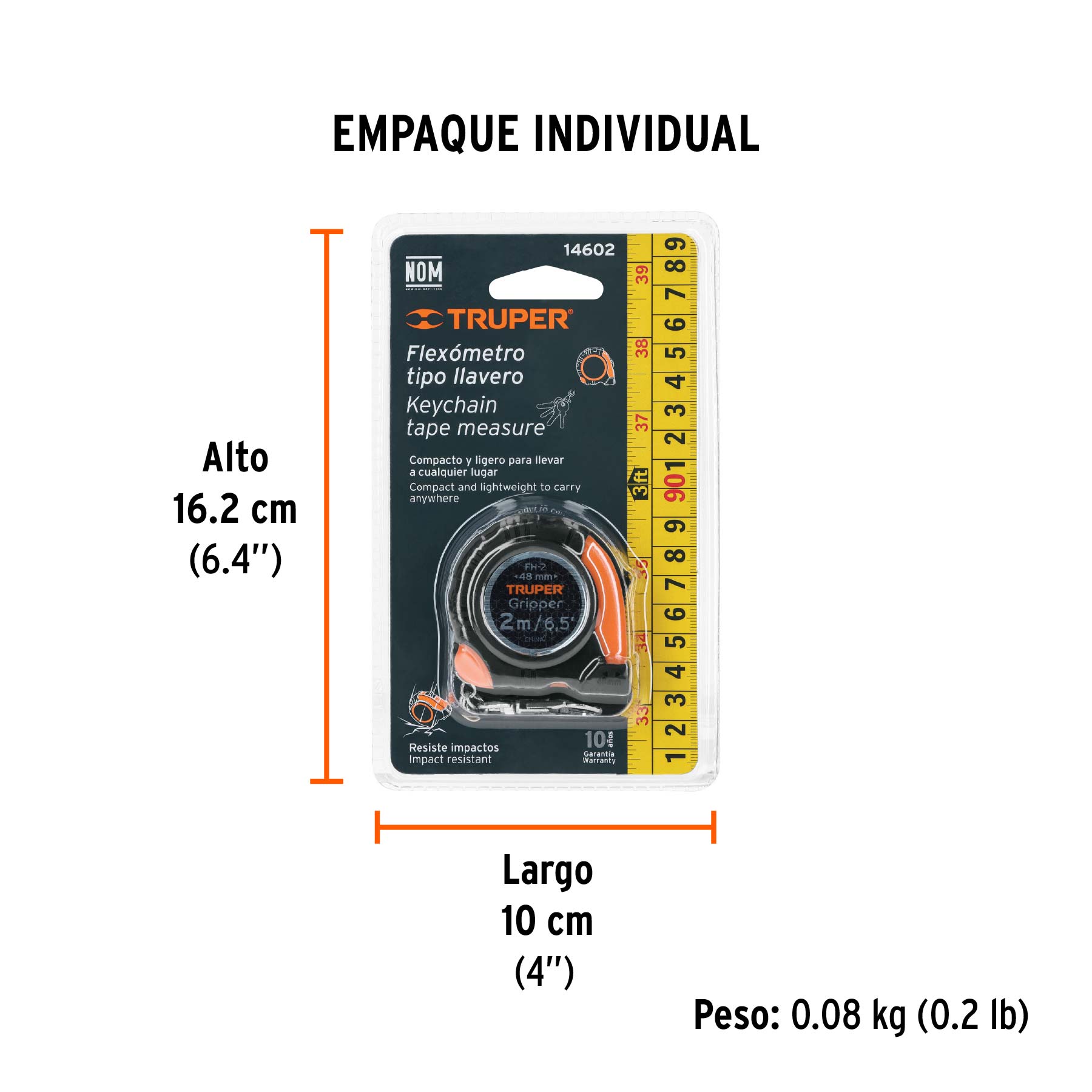Flexómetro Gripper de 2 m tipo llavero, cinta 13 mm, Truper