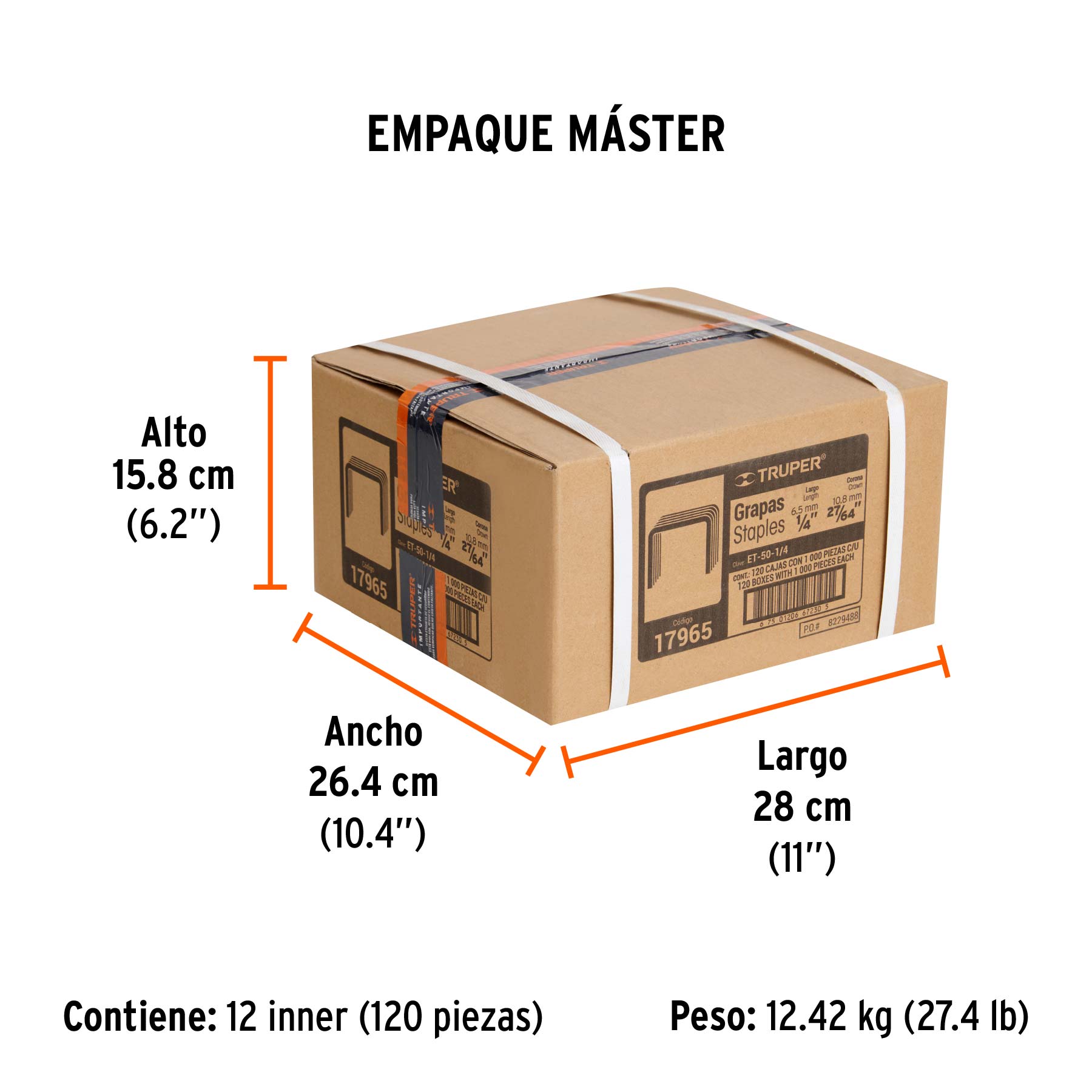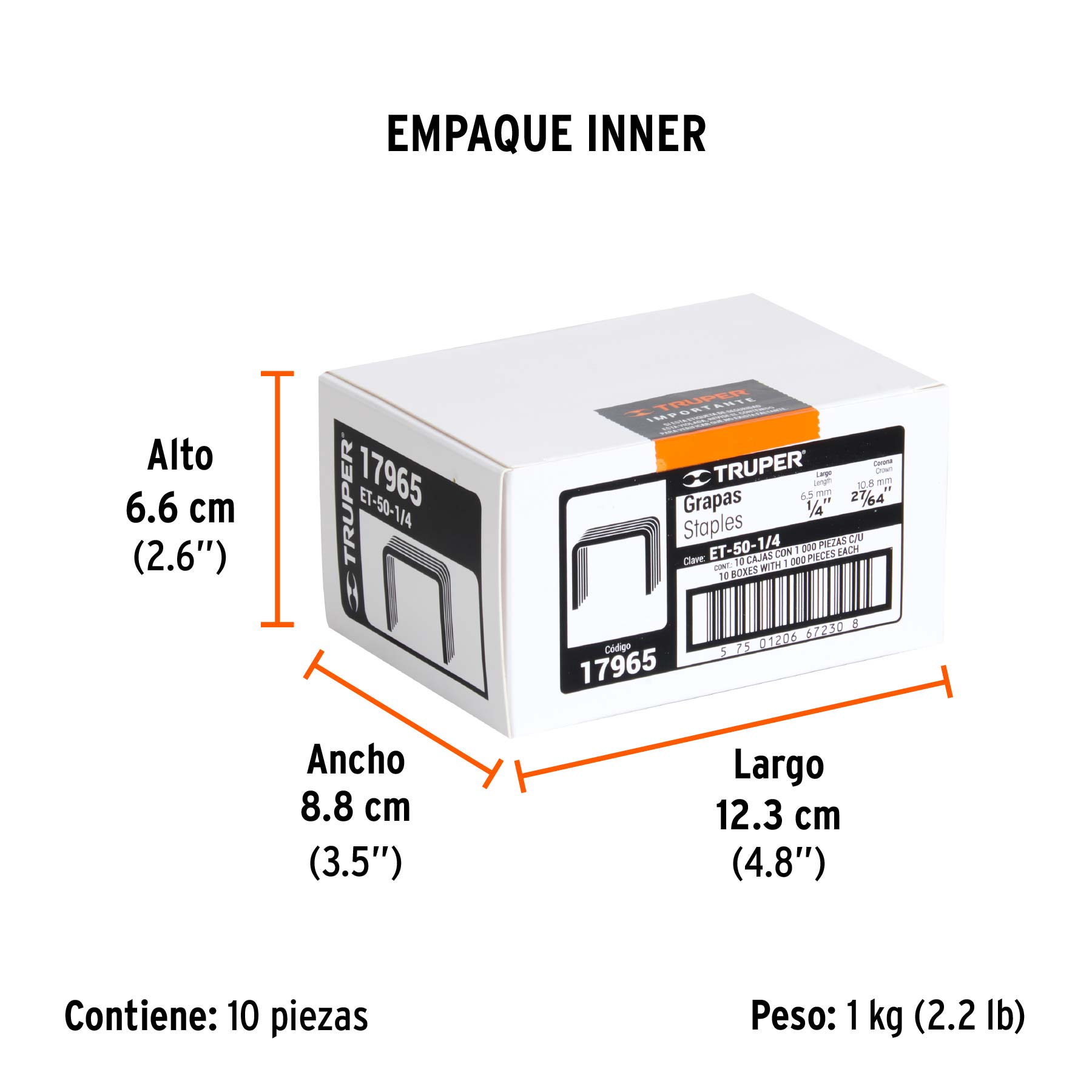1000 grapas 1/4" corona 10.6mm, para ET-50X, ET-50 y EM-50