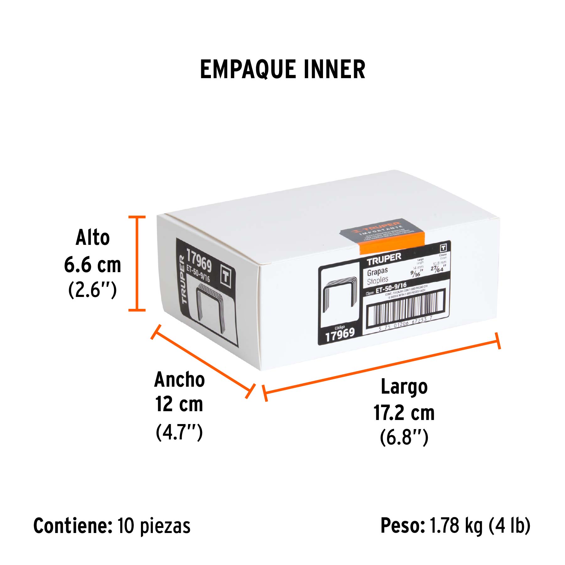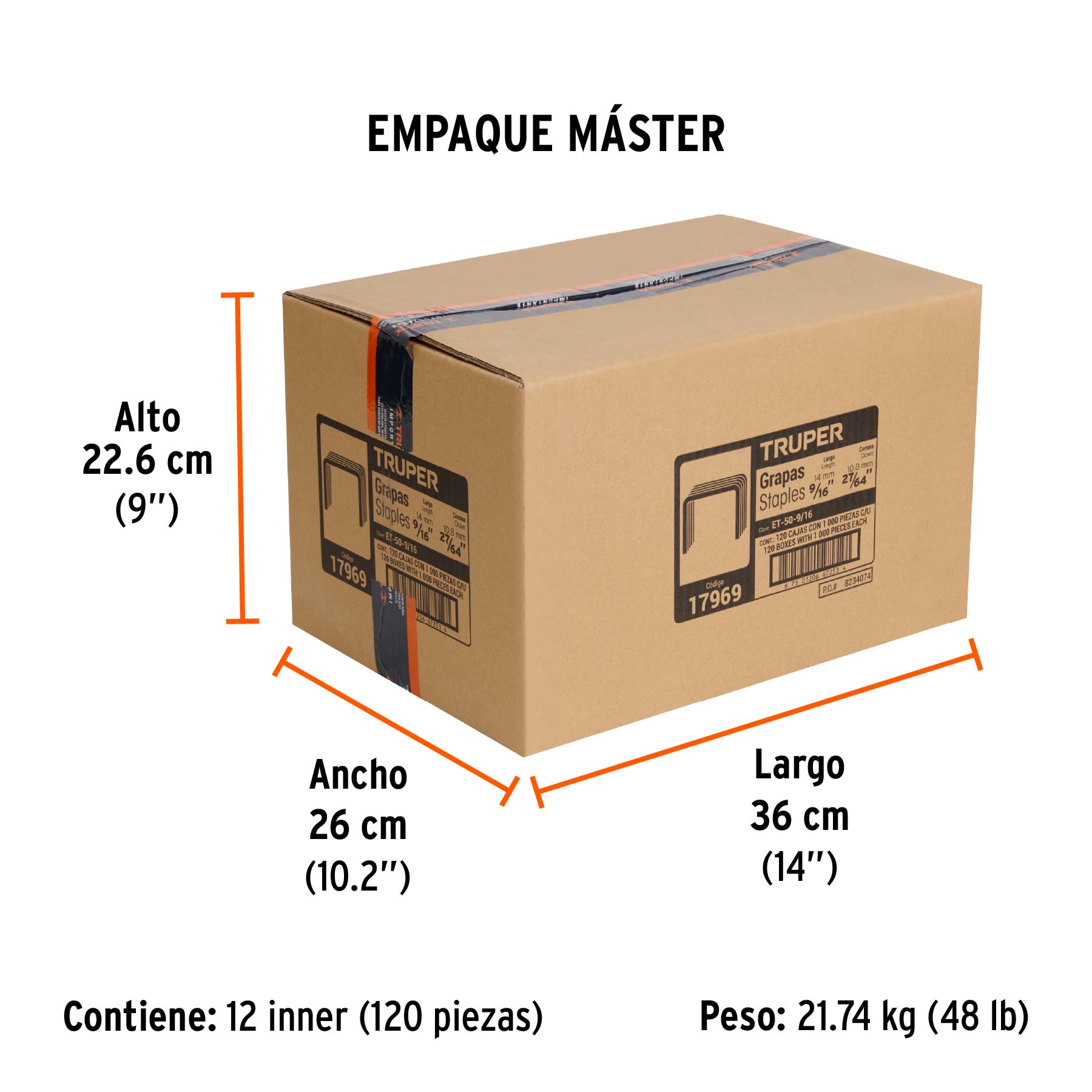 1000 grapas 9/16" corona 10.6 mm, para ET-50X y ET-50,TRUPER