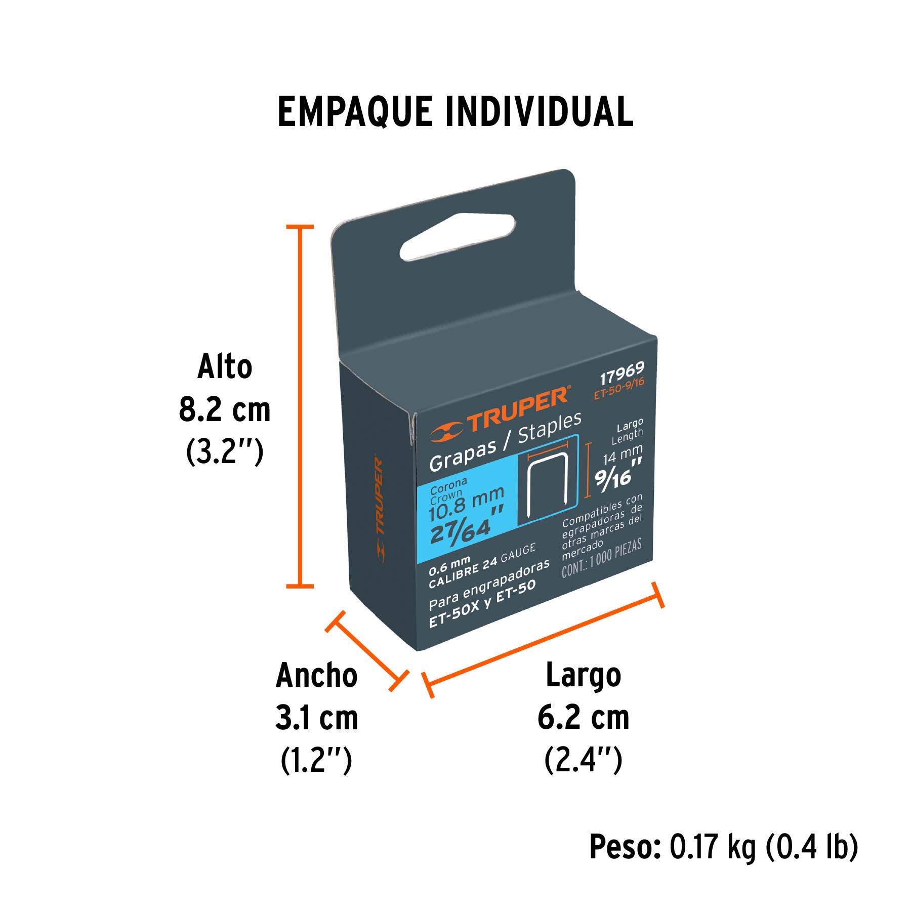 Ideal para engrapadoras modelos ET-50X y ET-50 marca Truper®
