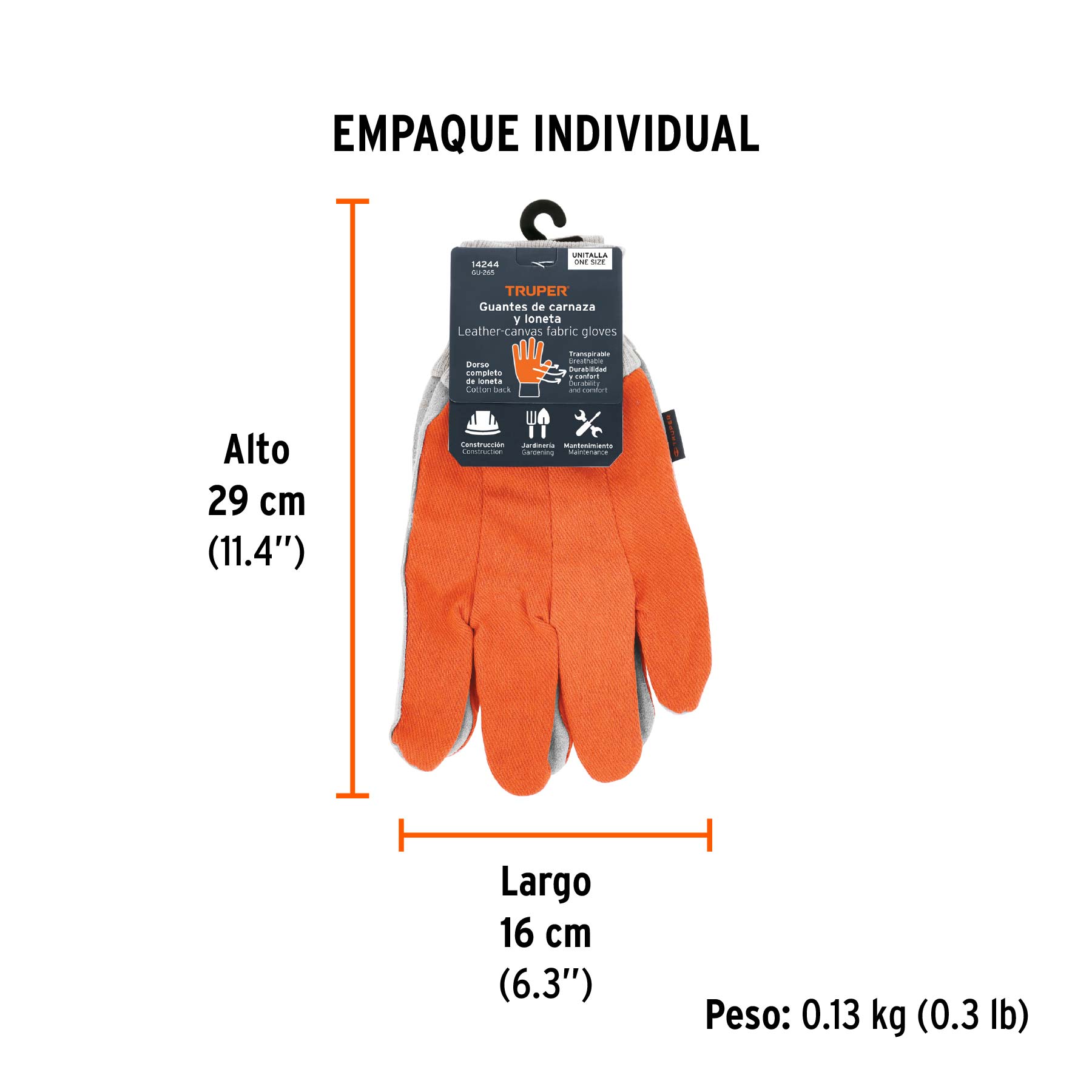 Guantes de carnaza y loneta, uso ligero, unitalla, TRUPER