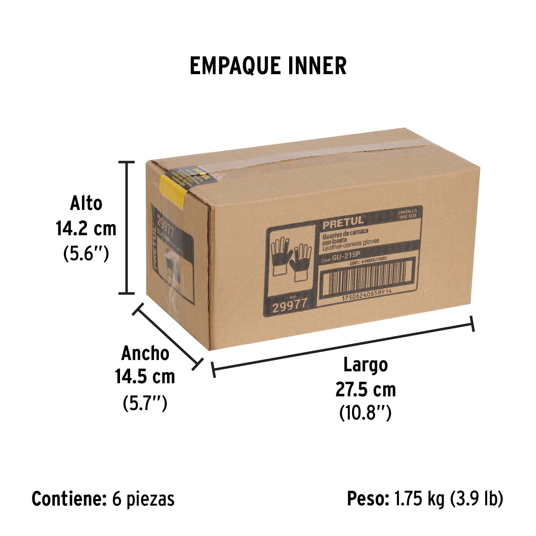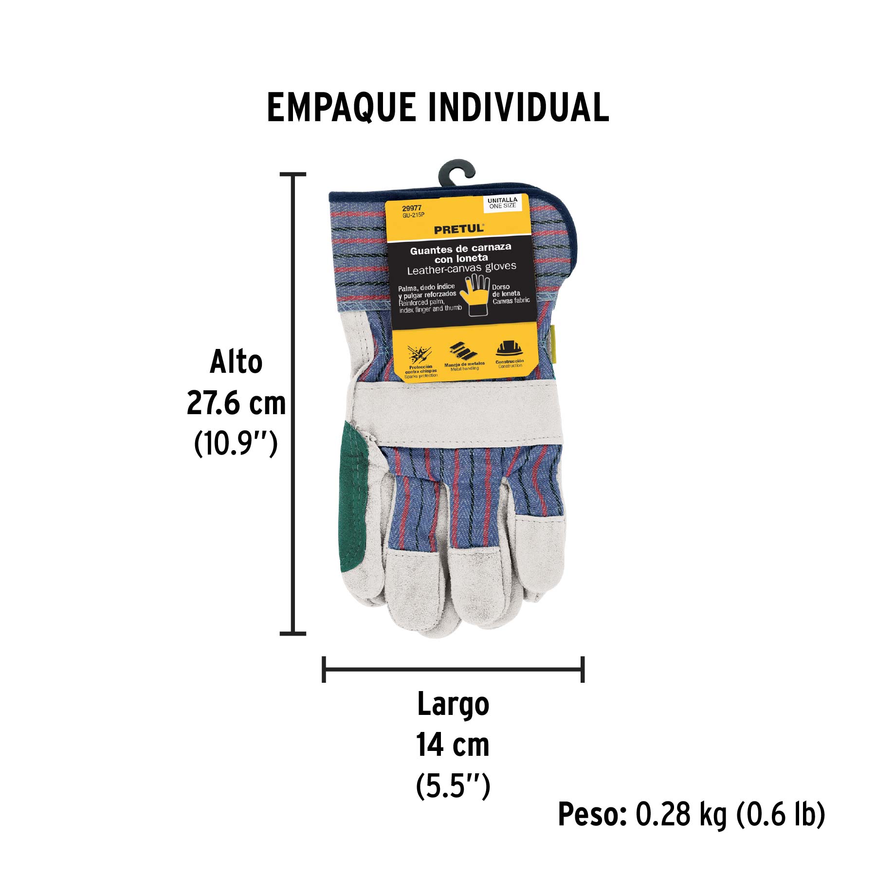 Guantes de carnaza y loneta con refuerzo, unitalla, PRETUL