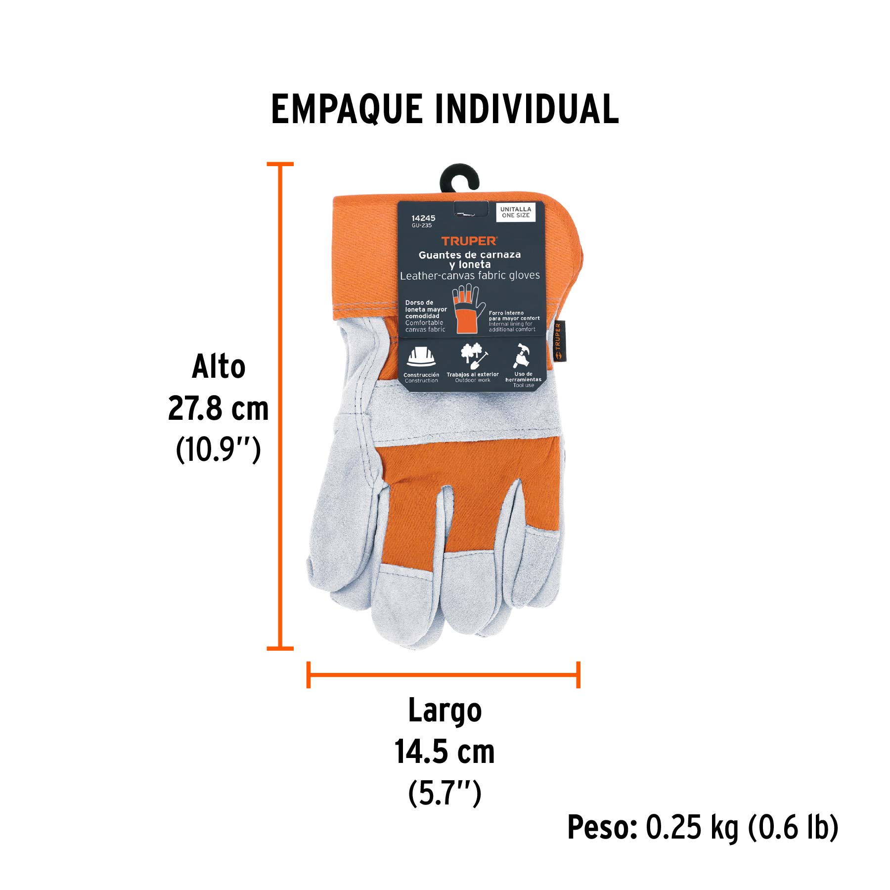 Guantes de carnaza y loneta, unitalla, TRUPER