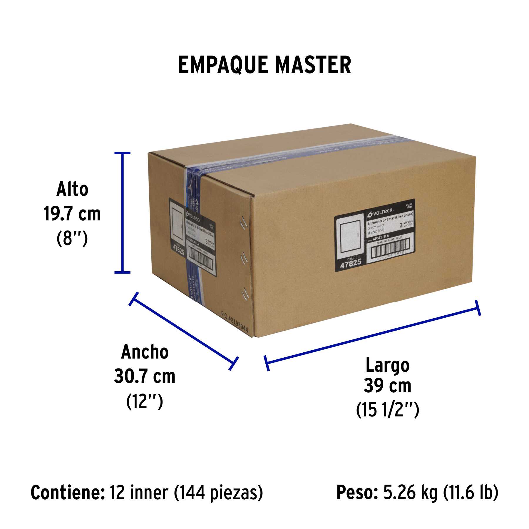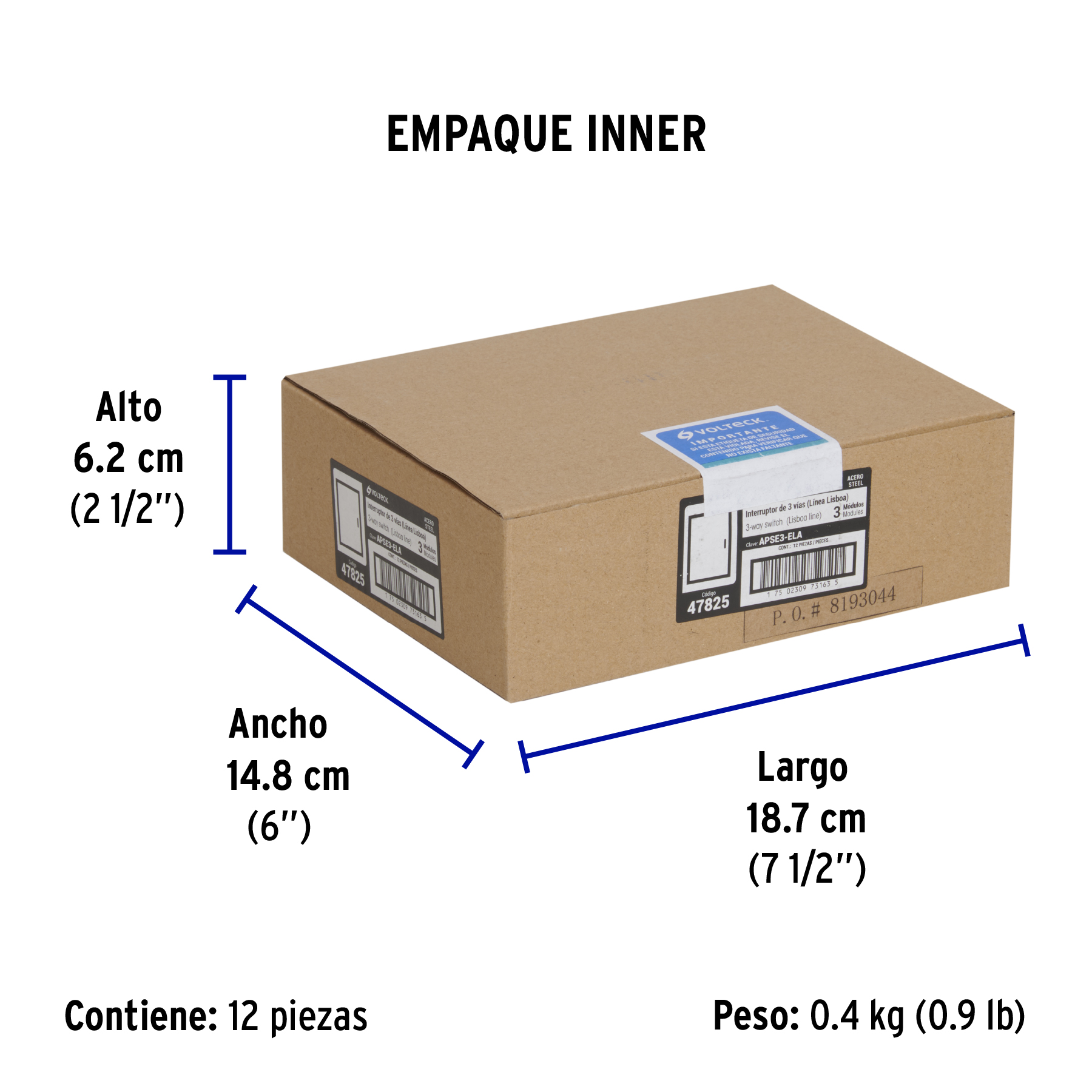 Interruptor 3 vías acero inox de 3 módulos, línea Lisboa