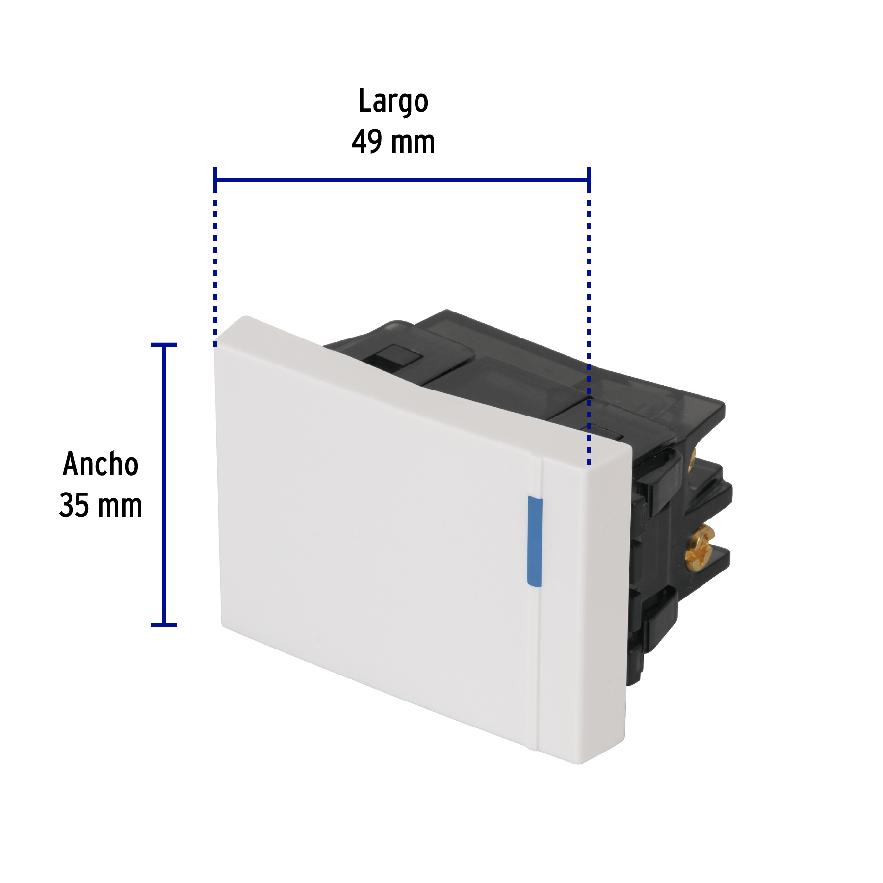 Interruptor de 3 vías, 1.5 módulos, línea Española, blanco