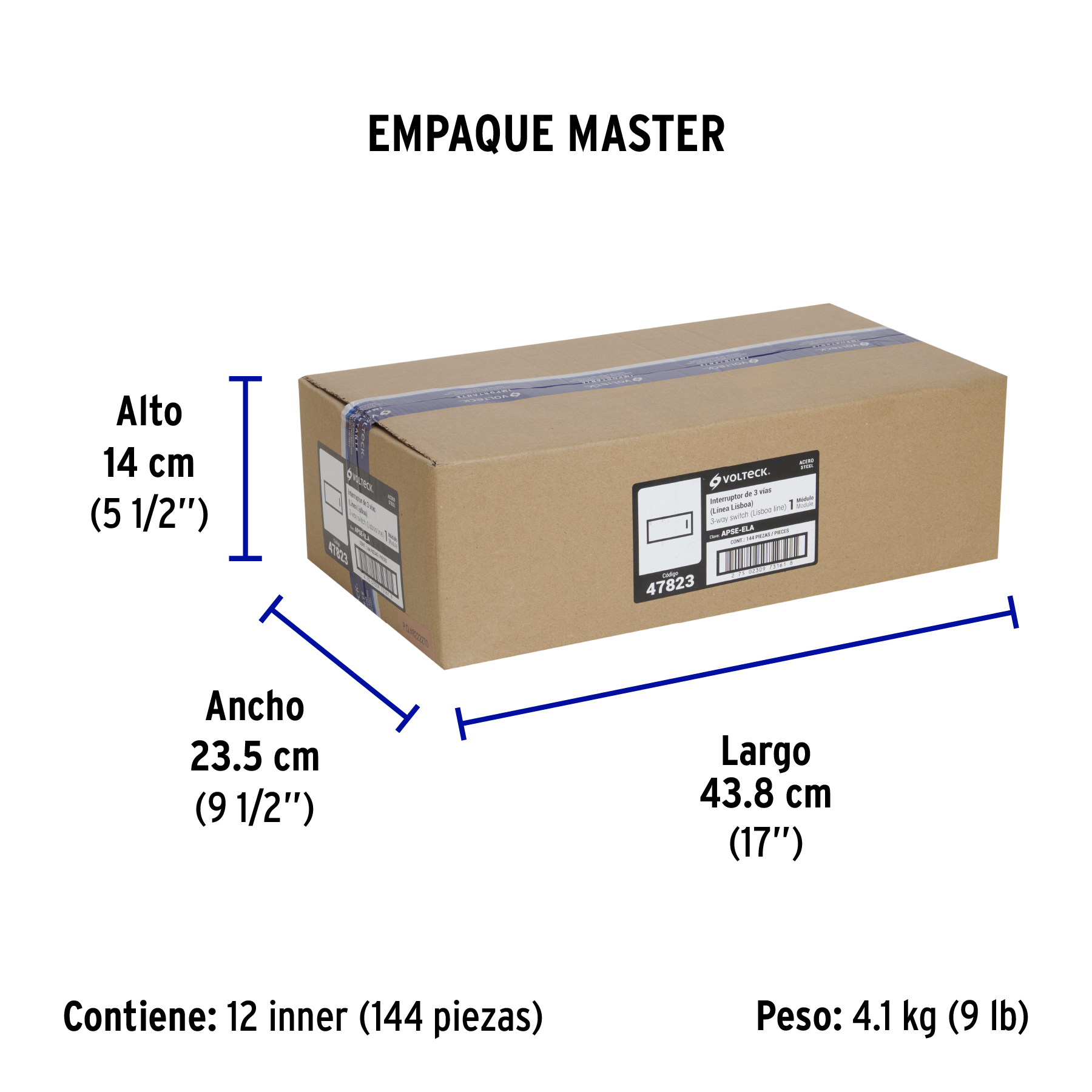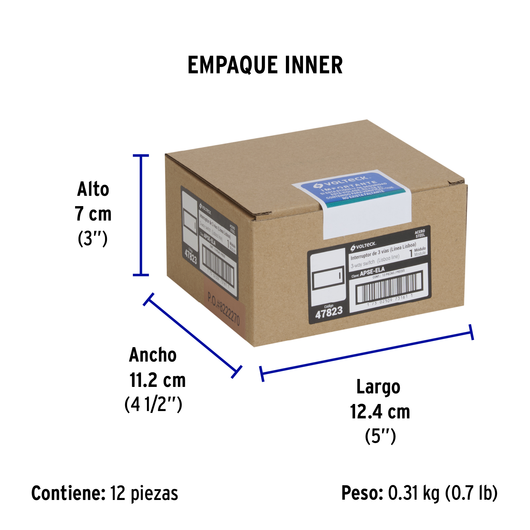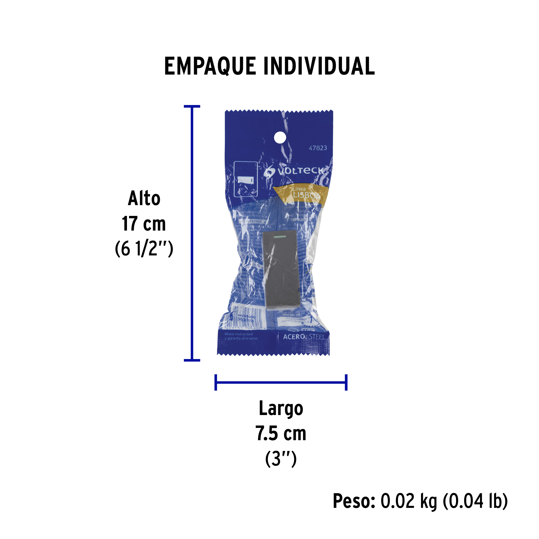 Interruptor de 3 vías acero inox de 1 módulo, línea Lisboa