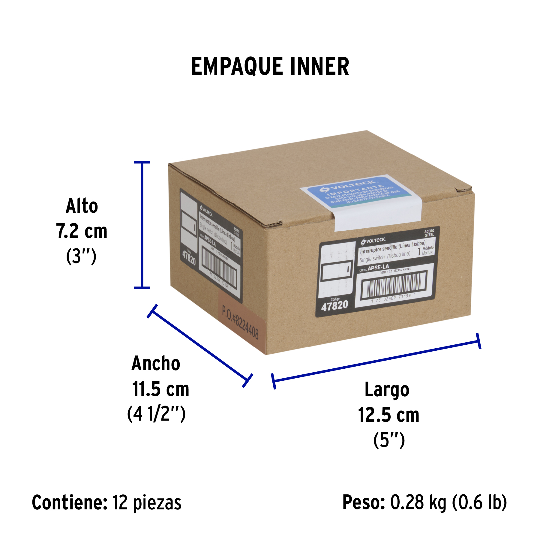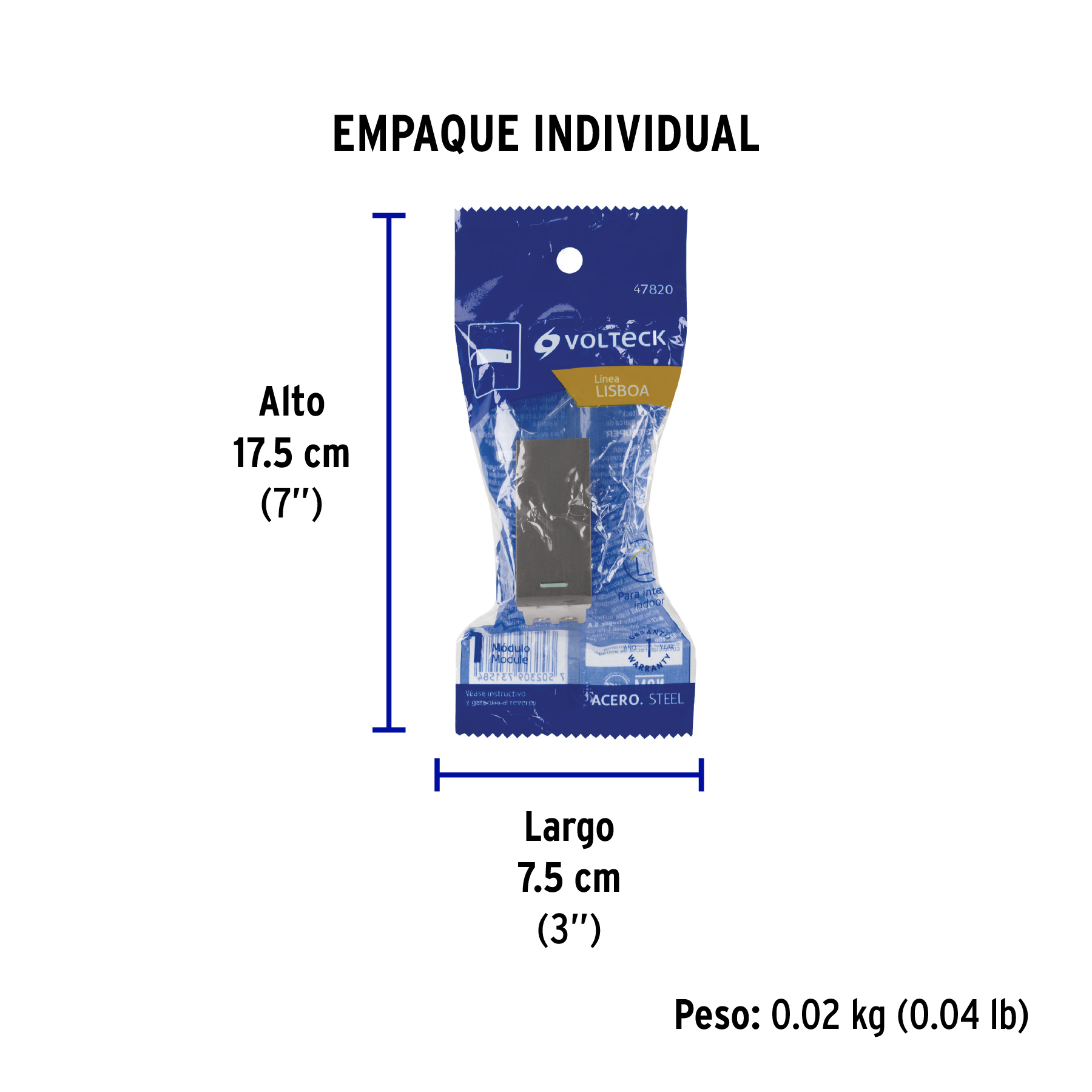 Interruptor sencillo acero inox de 1 módulo, línea Lisboa