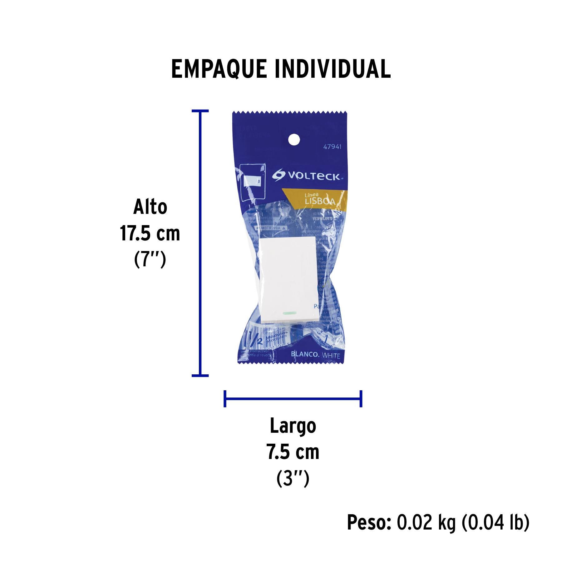 Interruptor sencillo blanco de 1.5 módulos, línea Lisboa