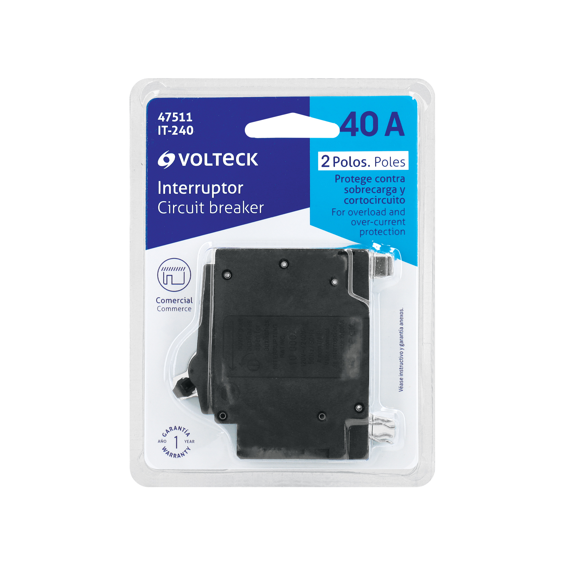 Interruptor de 2 polos 40A, enchufable, VOLTECK
