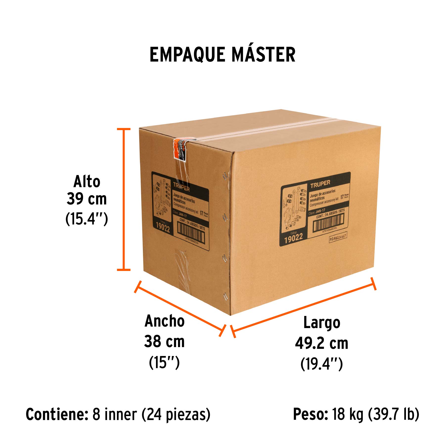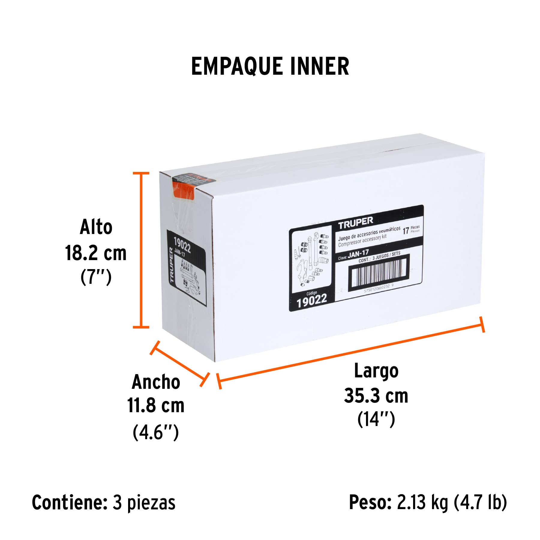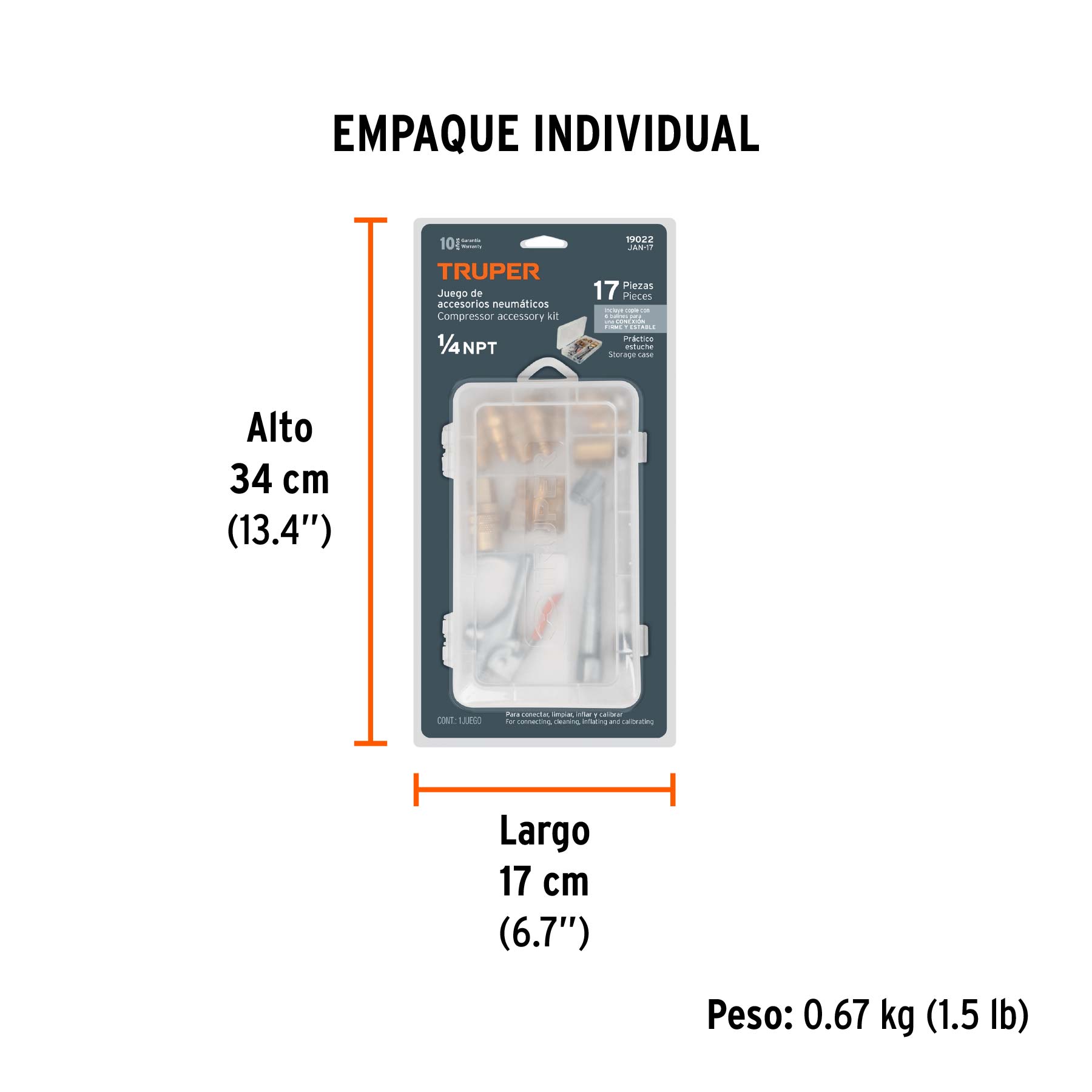 Juego de 17 accesorios neumáticos, cuerda 1/4" NPT, TRUPER