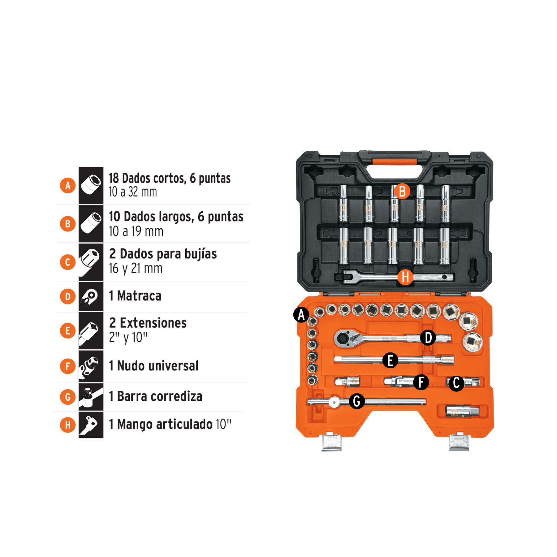 Juego de 36 herramientas cuadro 1/2" mm para mecánico