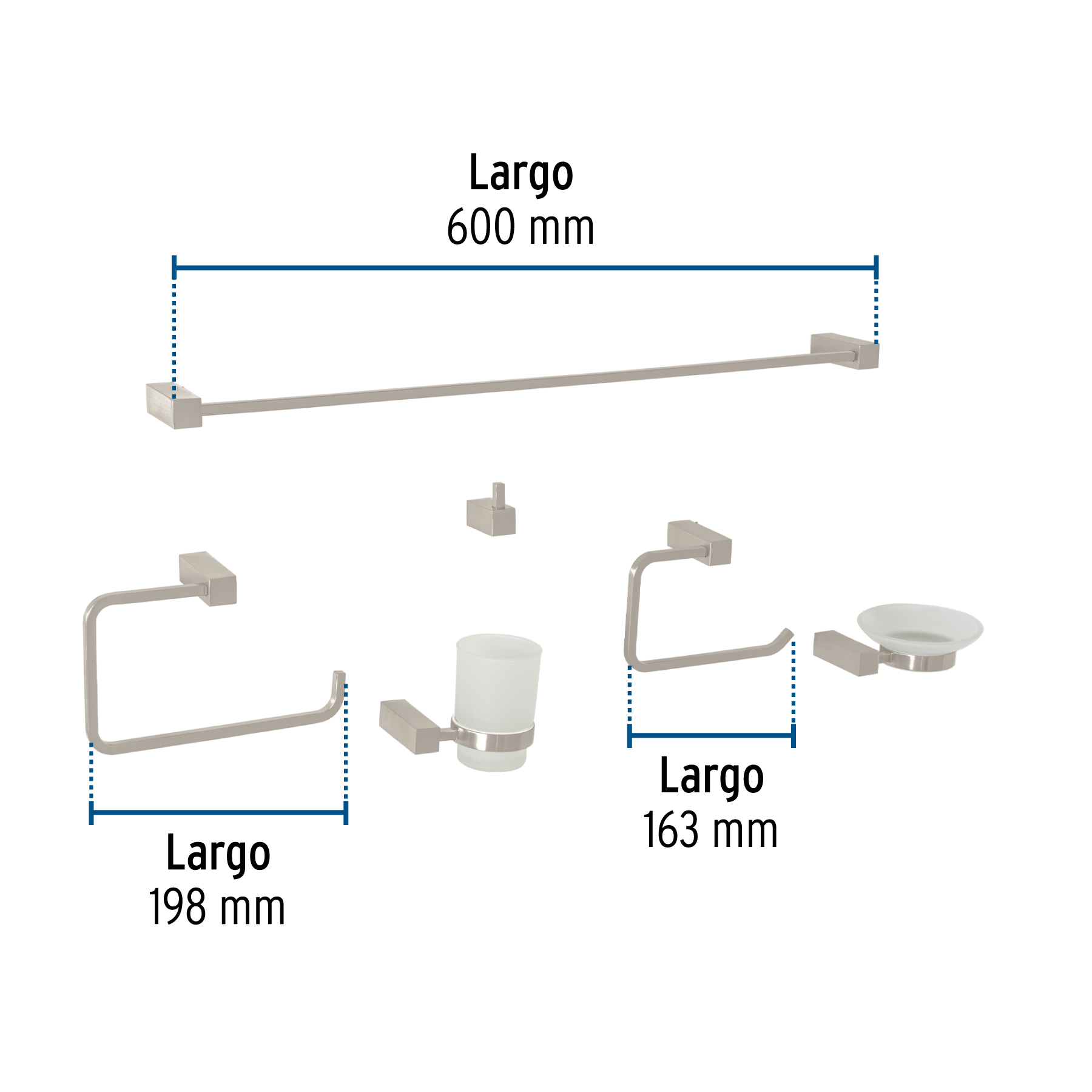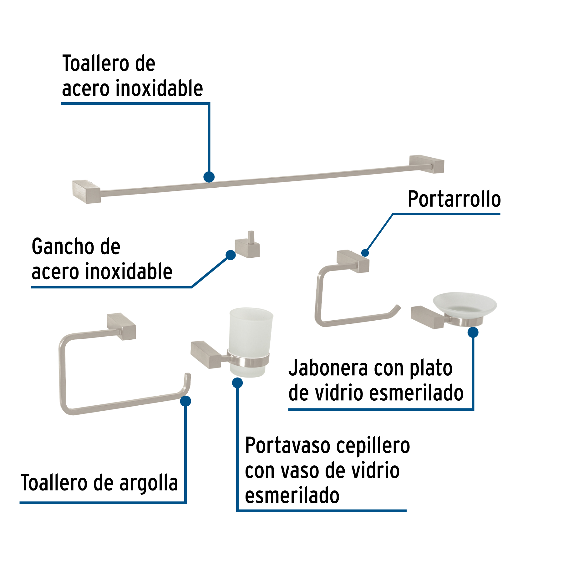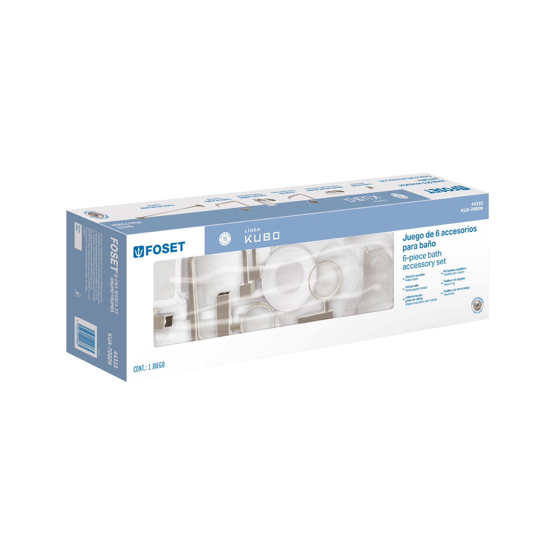 Juego de 6 accesorios para baño, satín, FOSET KUBO