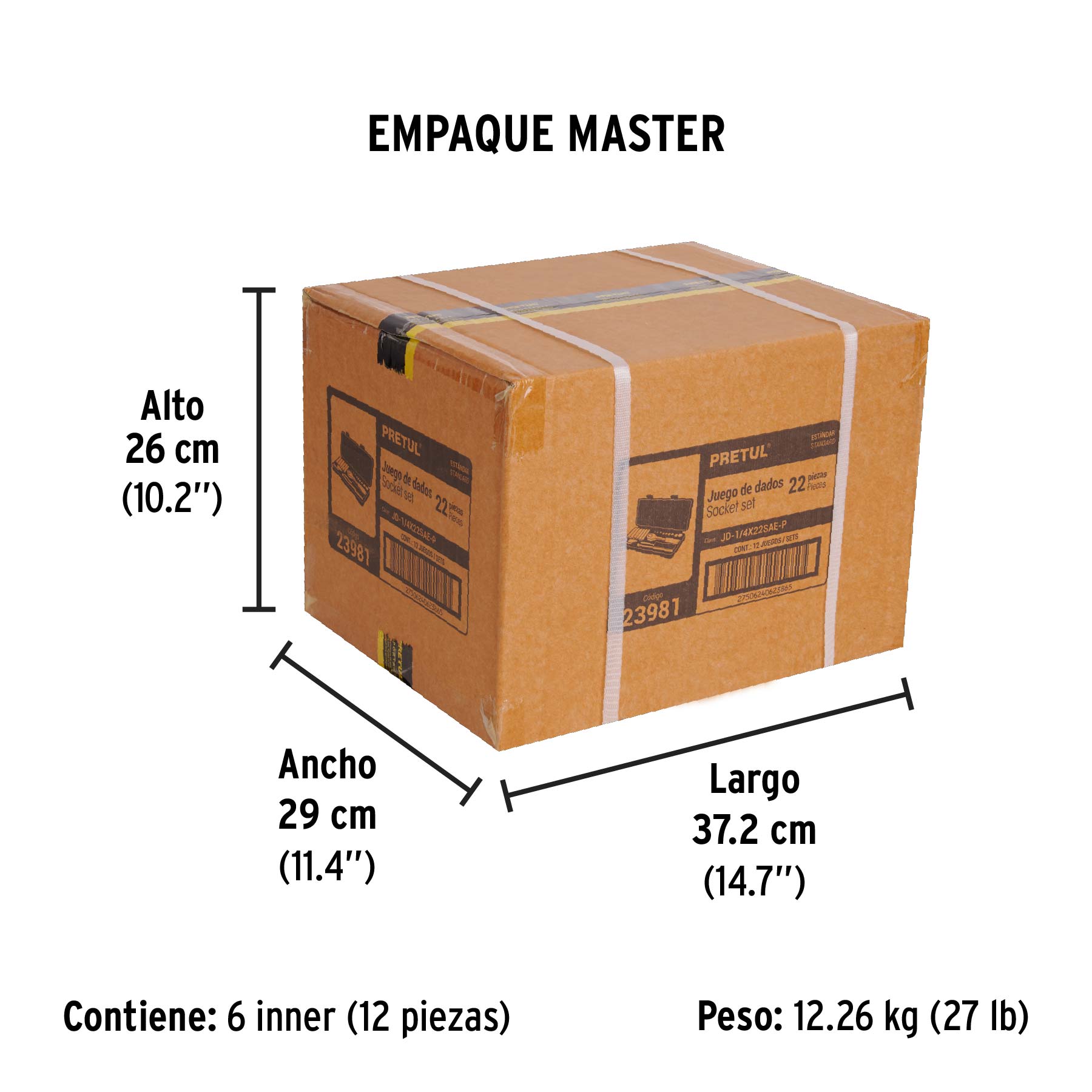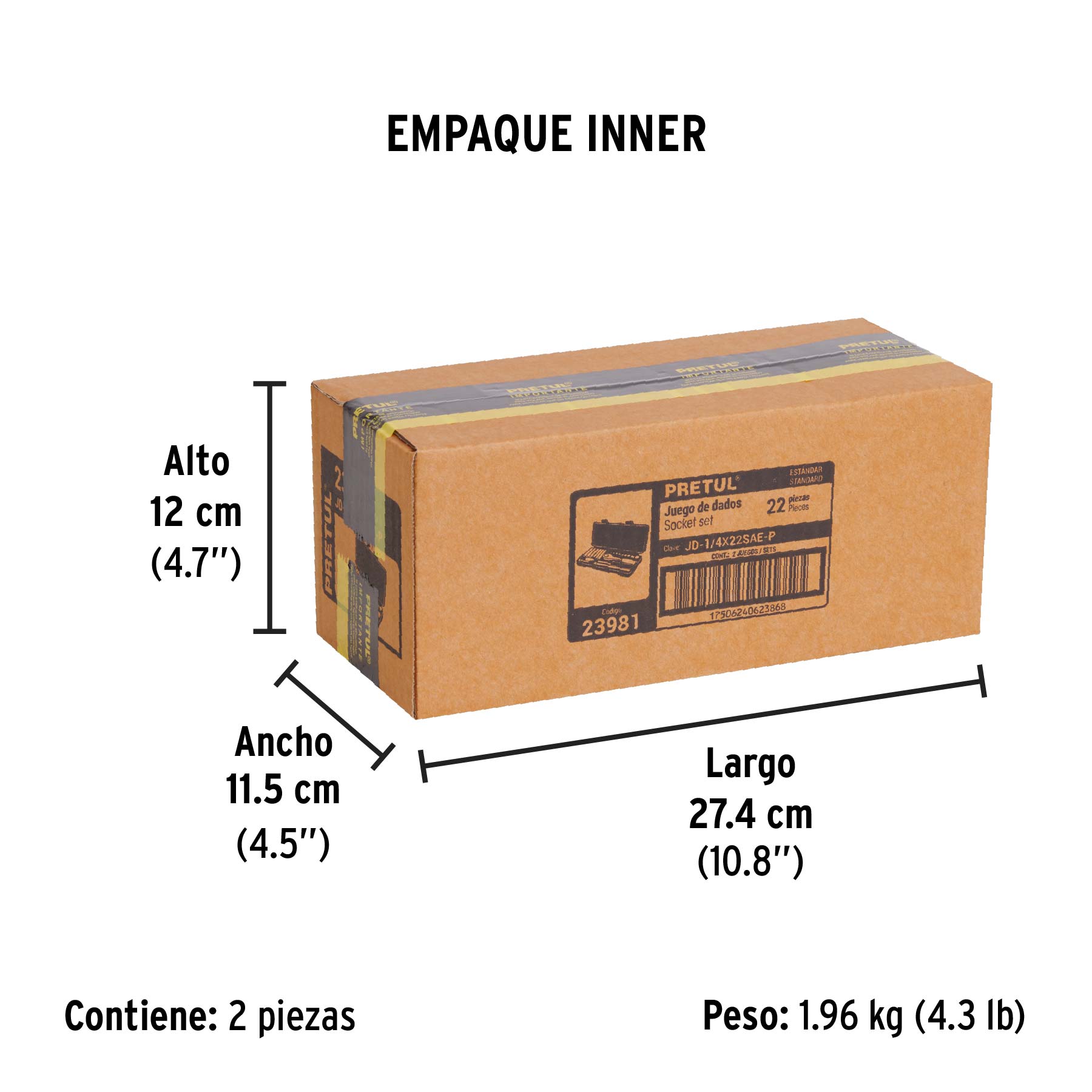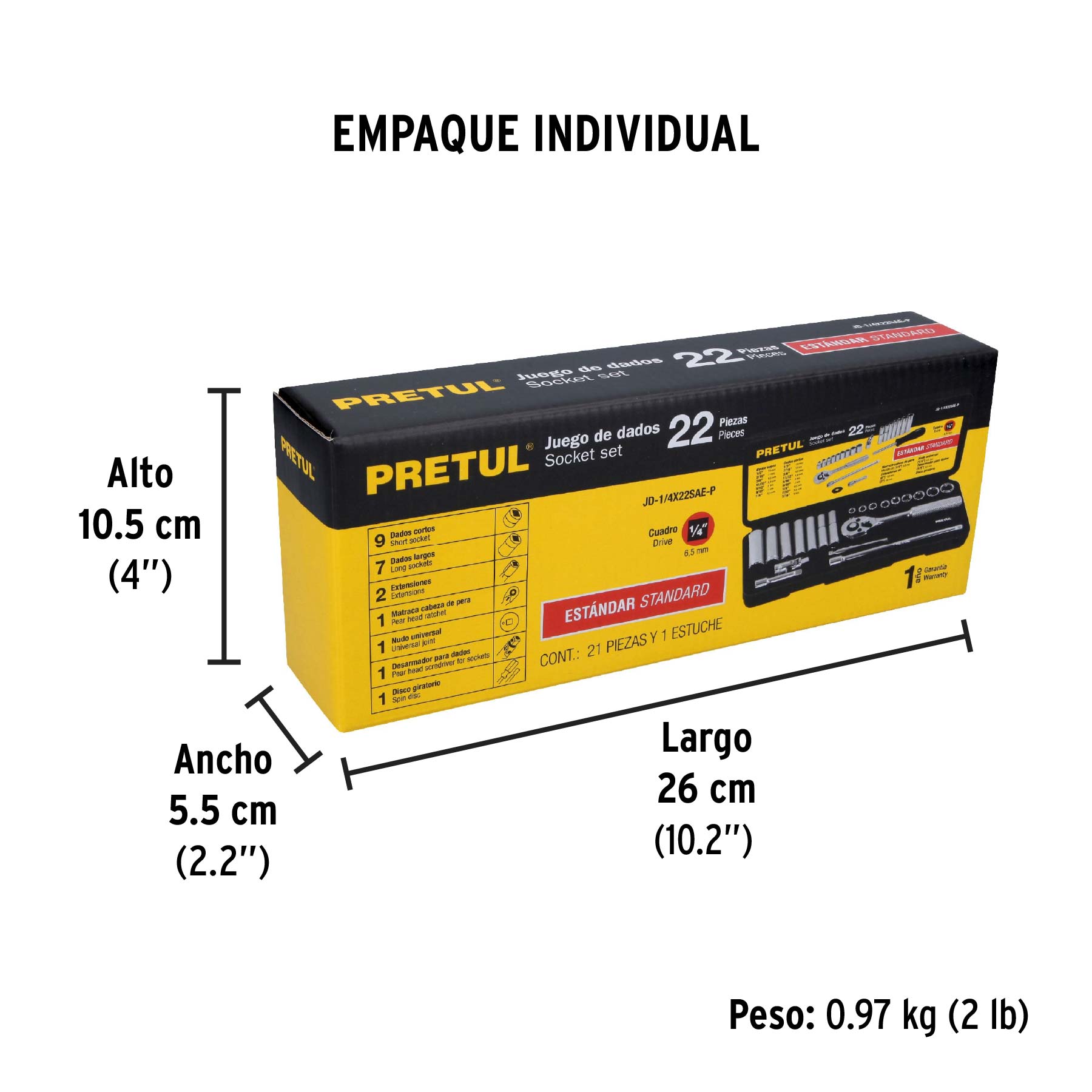 Juego de 22 herramientas 1/4" std para mecánico, Pretul