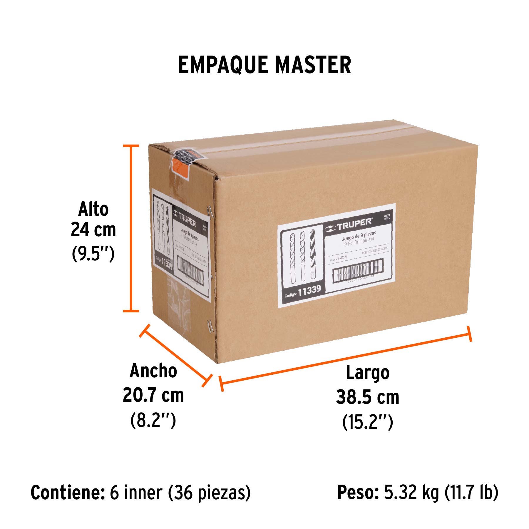 Juego de 9 brocas para metal, concreto y madera, Truper
