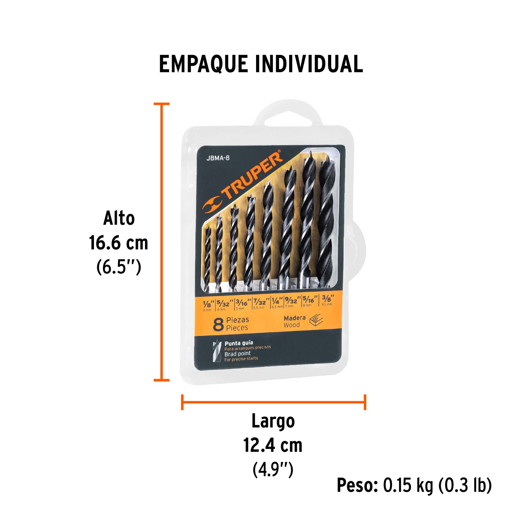 Juego de 8 brocas con punta centradora para madera, TRUPER