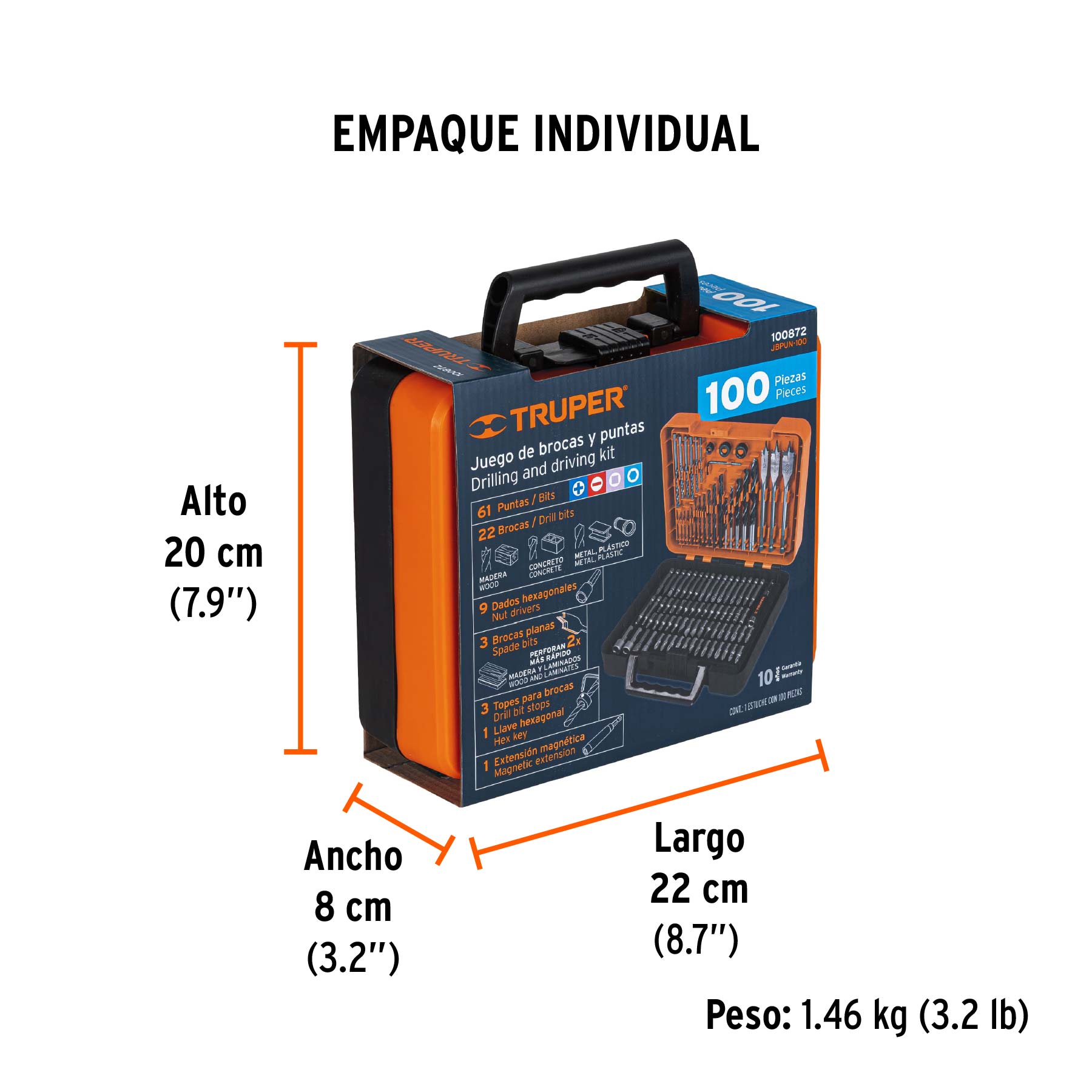 Juego de 100 brocas y puntas en estuche plástico, Truper