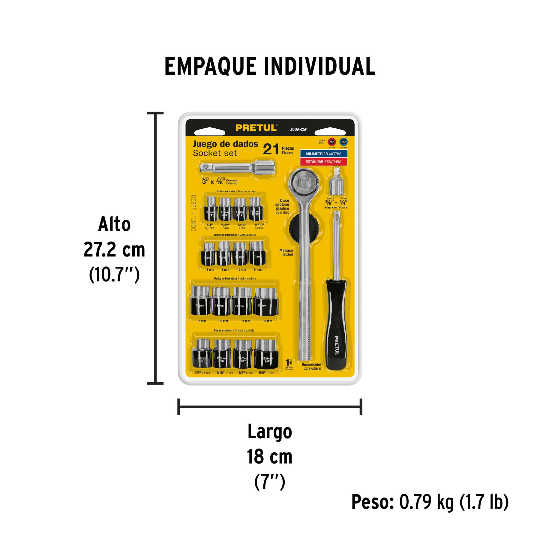 Juego de 21 herramientas 1/4" y 3/8" para mecánico, Pretul
