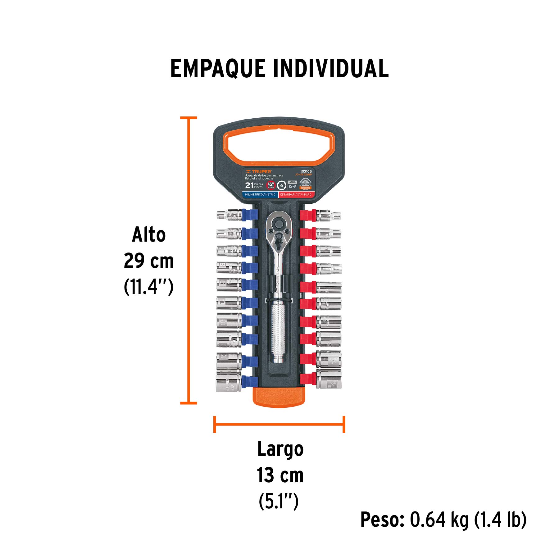 Juego de dados mm y std con matraca, cuadro 1/4", Truper