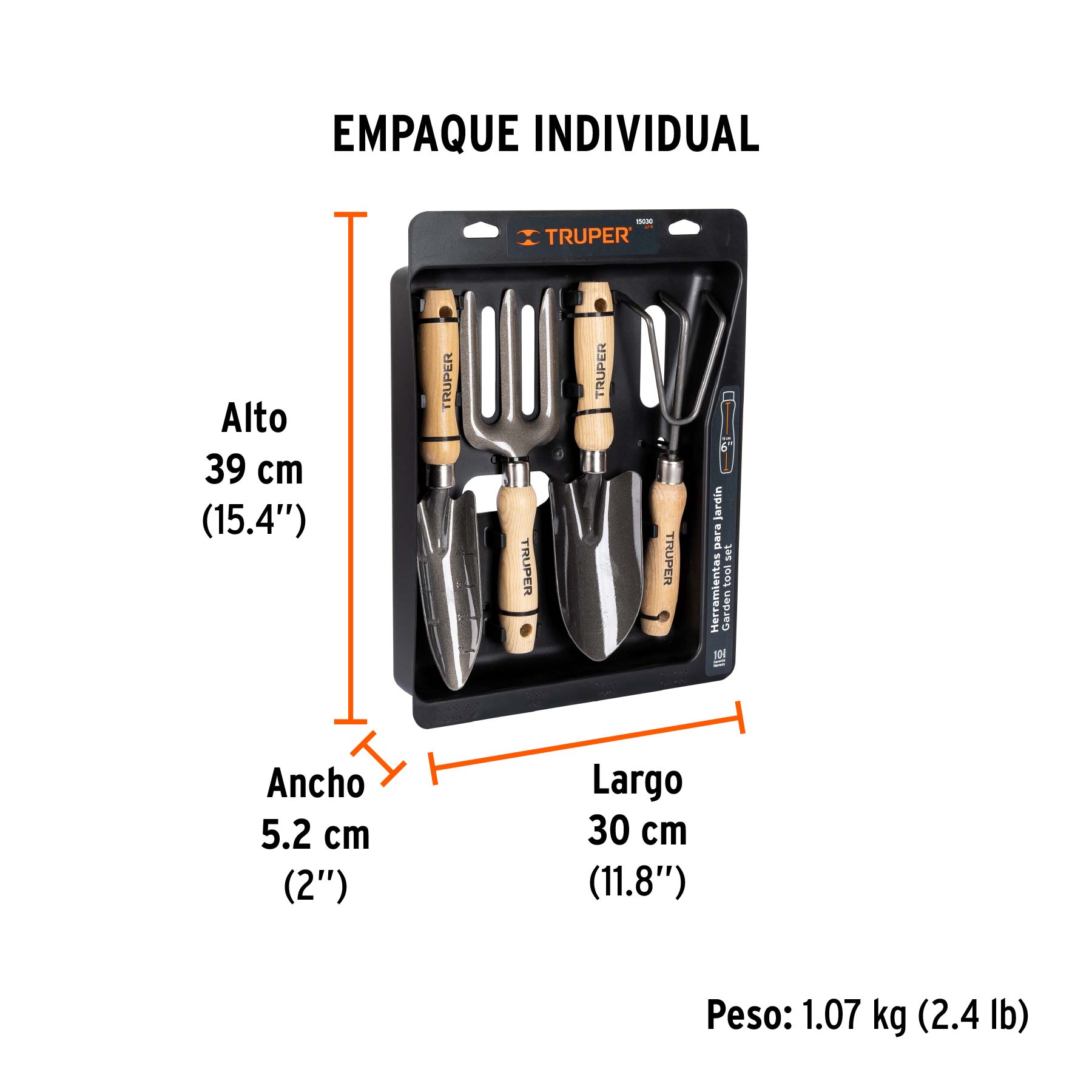 Juego de 4 herramientas, mangos de 6" para jardín, TRUPER