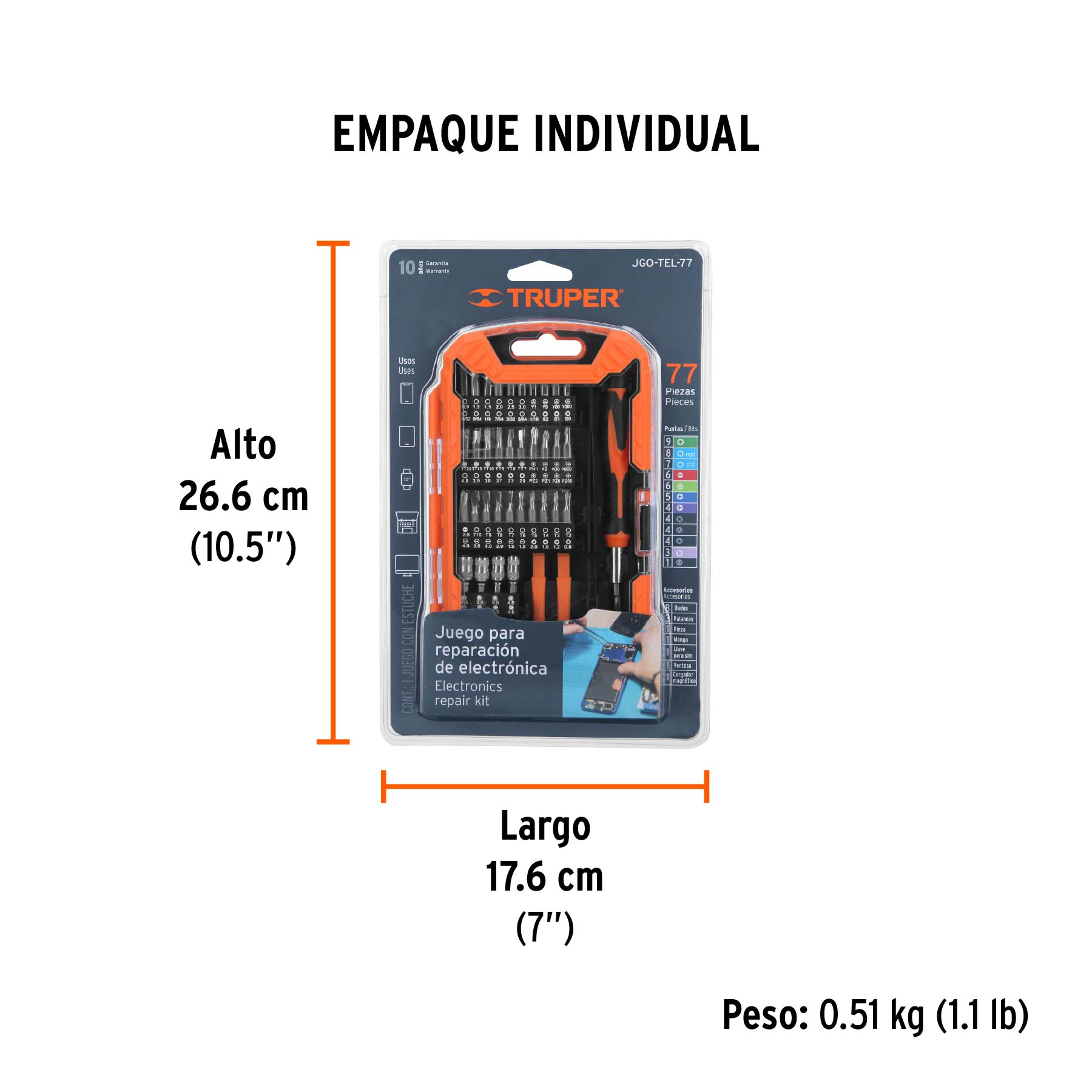 Juego de 77 piezas para reparación de electrónica, TRUPER