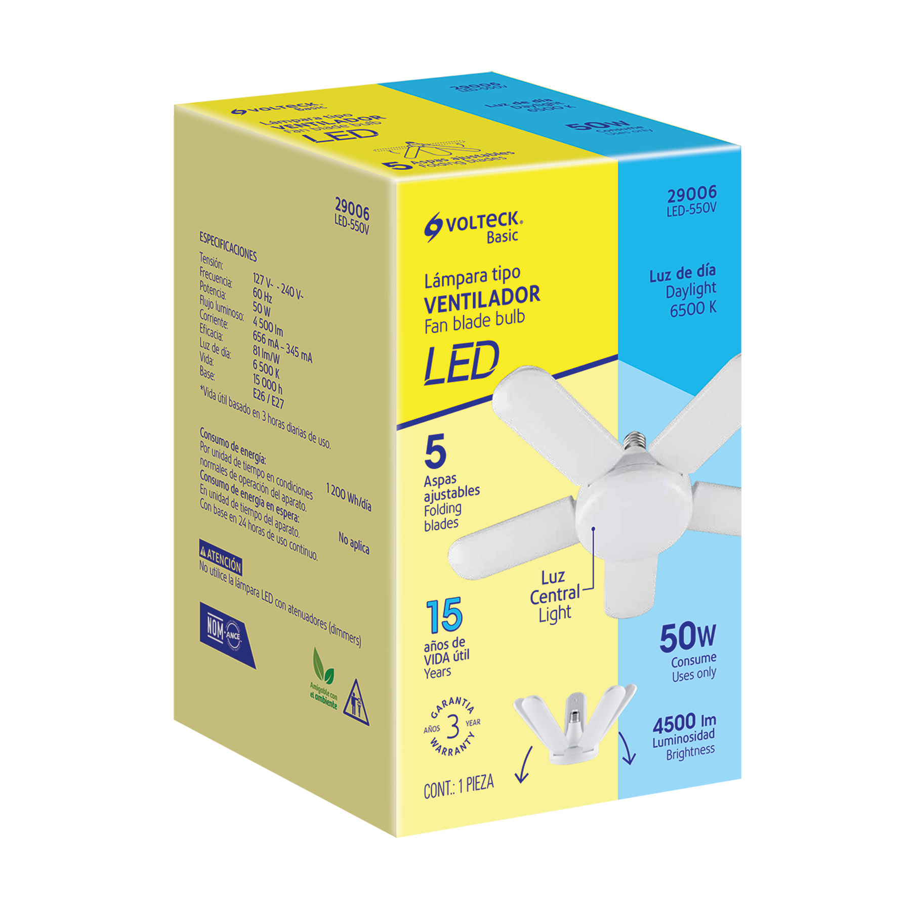 Lámpara LED tipo ventilador 50W, 5 aspas, 6500K, BASIC