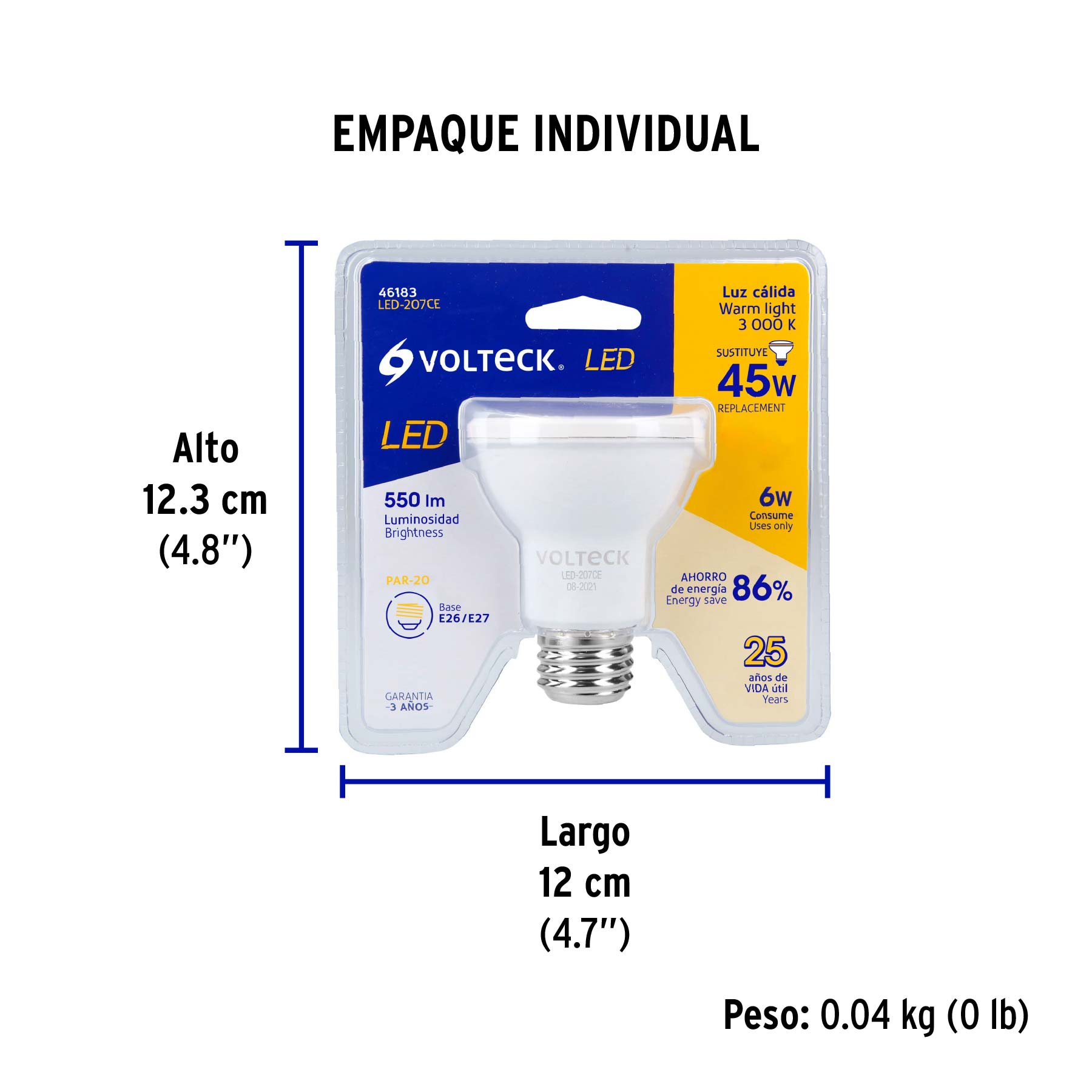Foco LED 6 W tipo PAR20, 3000K blanca cálida, VOLTECK