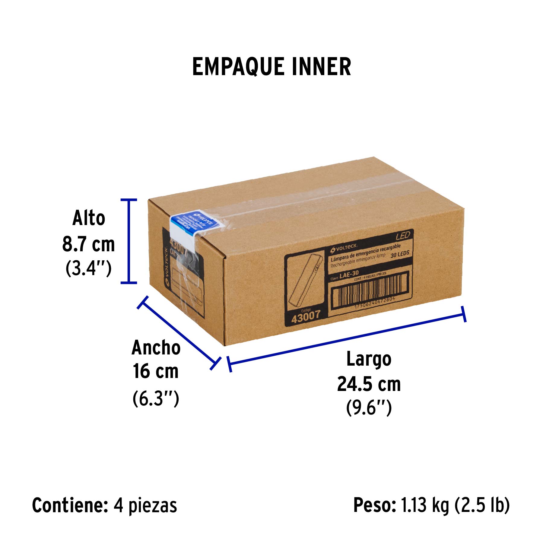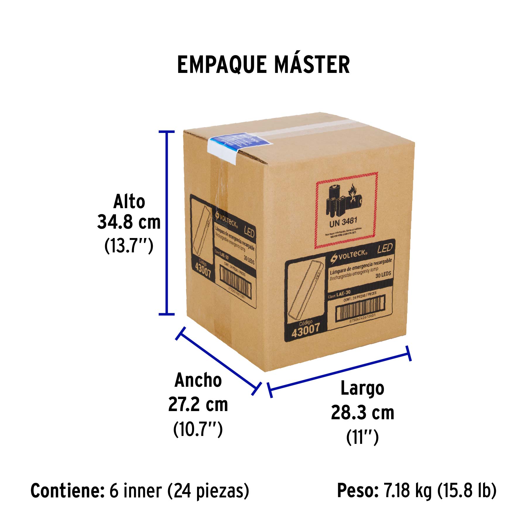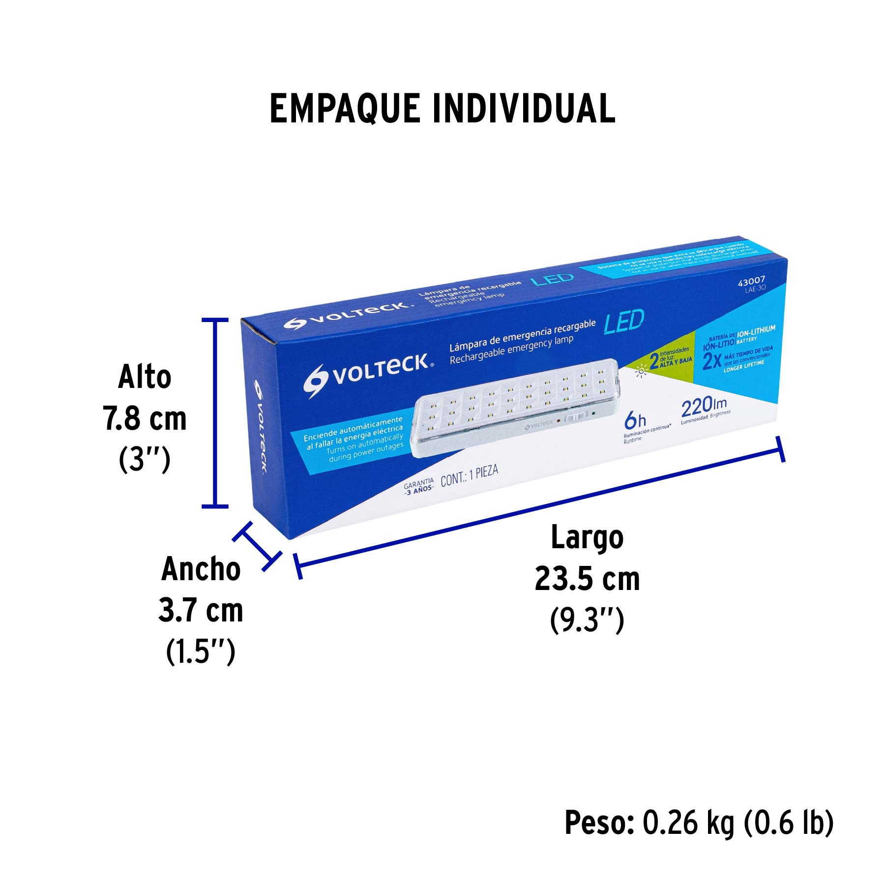 Lámpara de emergencia de 30 Leds, 220 lm recargable, VOLTECK