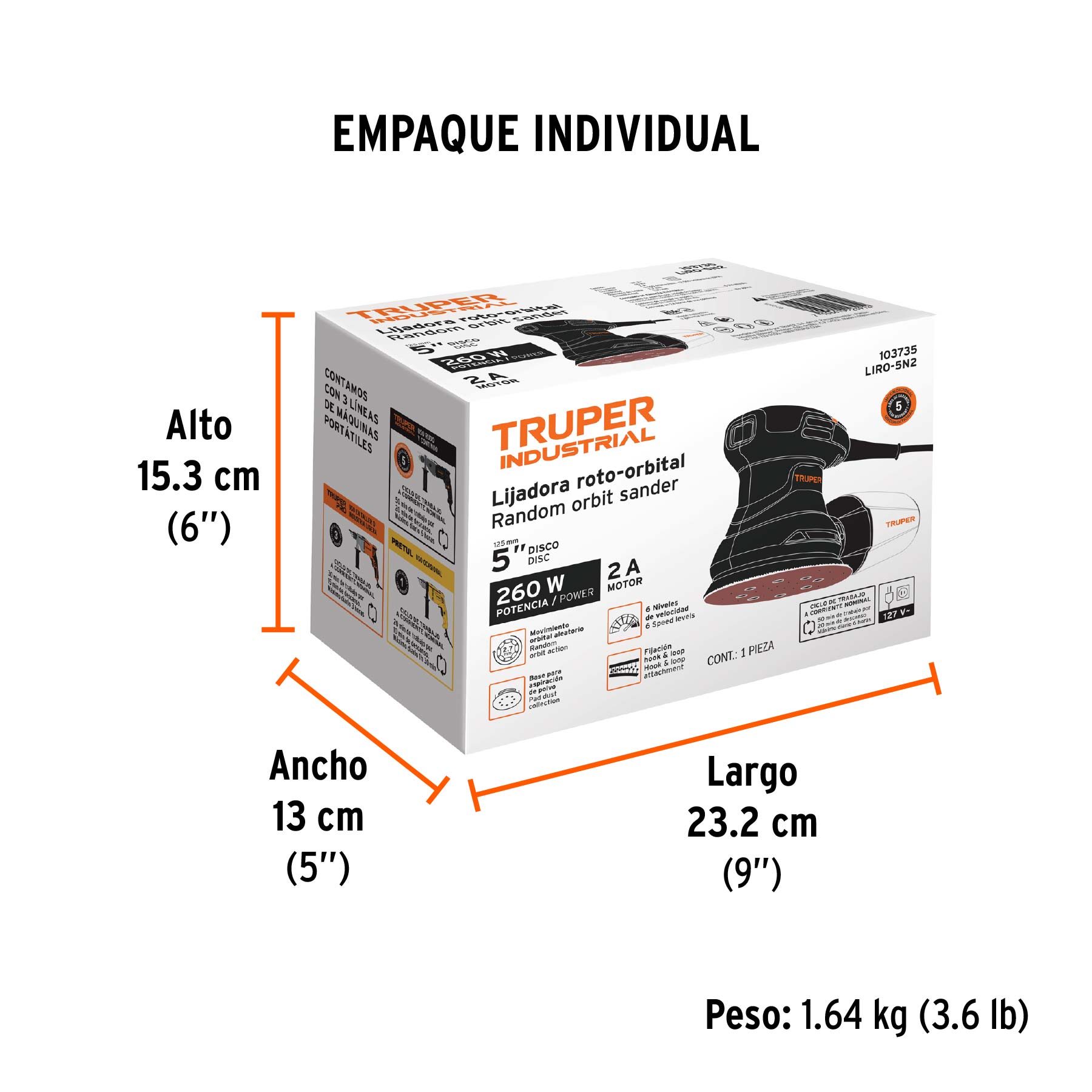 Lijadora roto orbital 5", 260W, TRUPER INDUSTRIAL