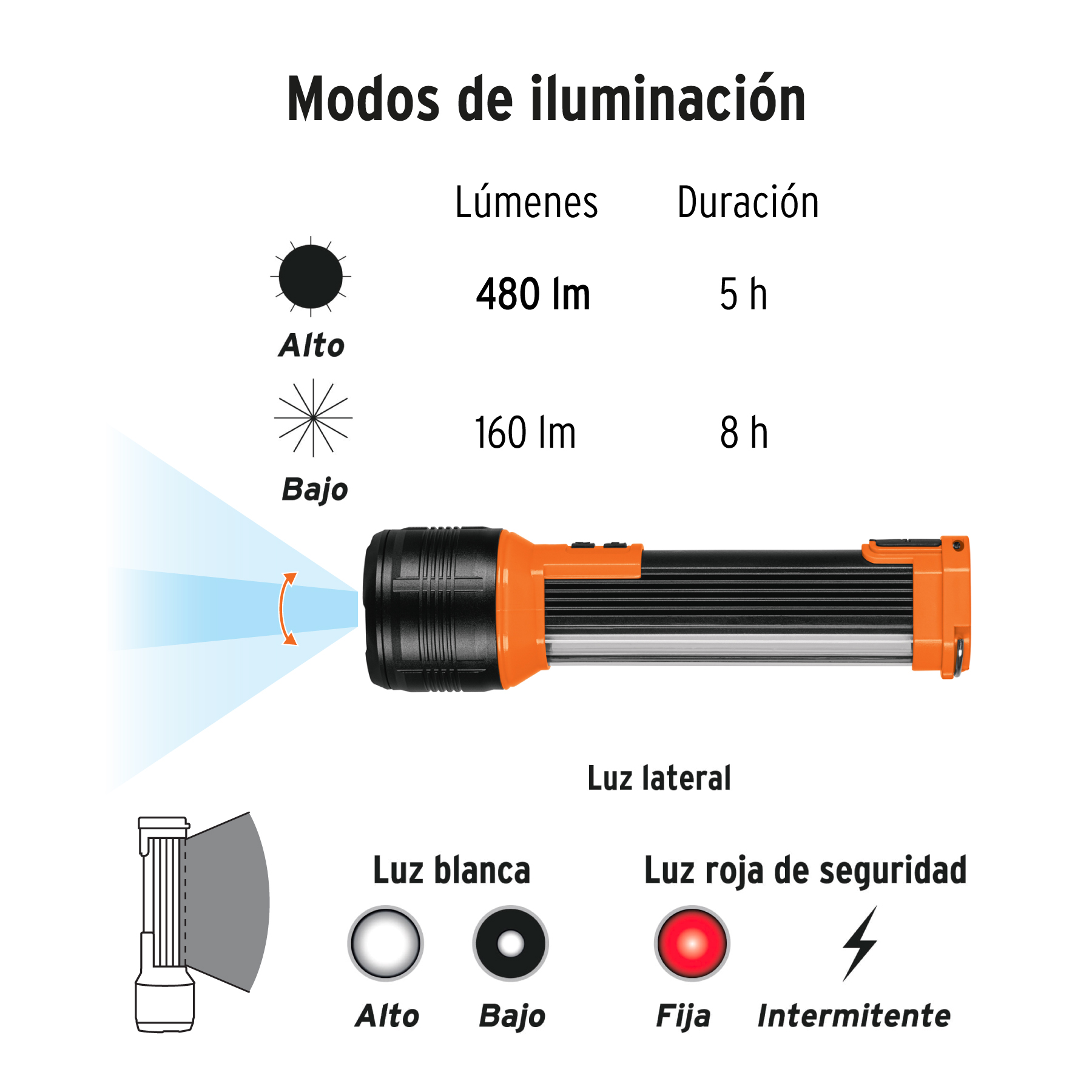 | Luminosidad | 480 lm (luz LED frontal y luz lateral) |